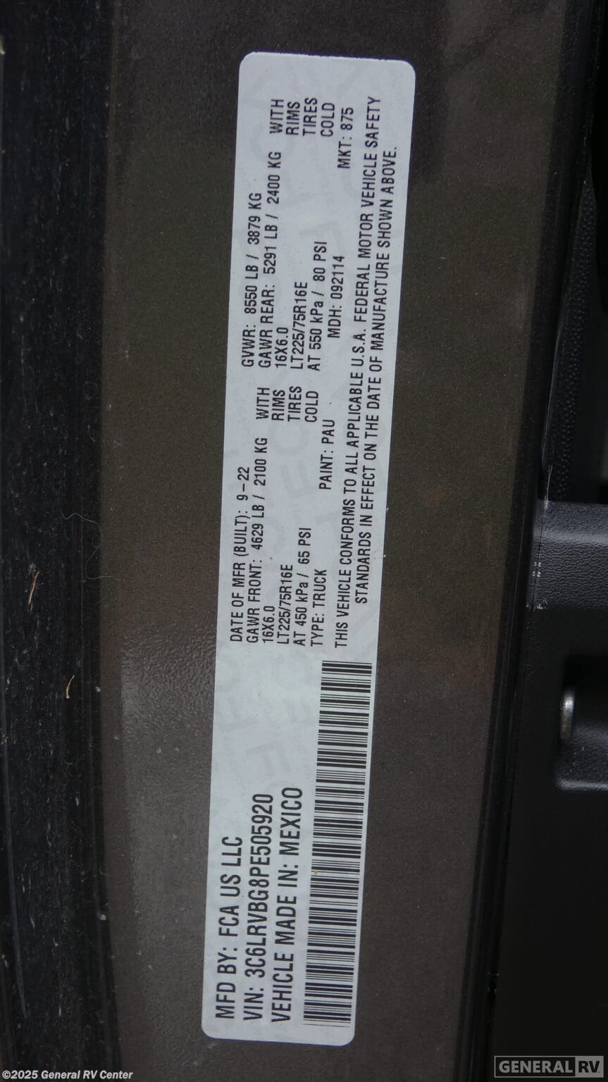 - VIN3C6LRVBG8PE505920