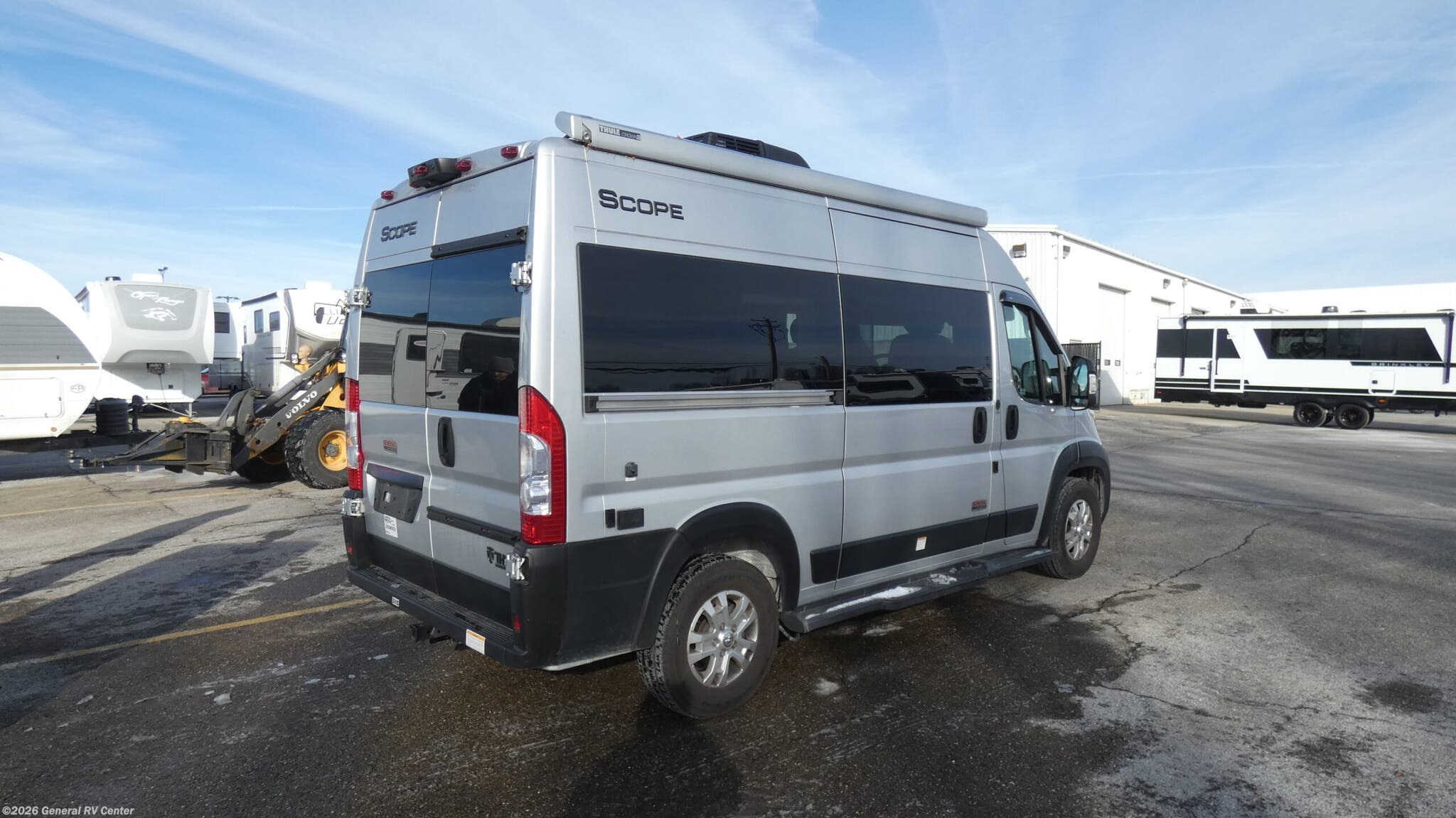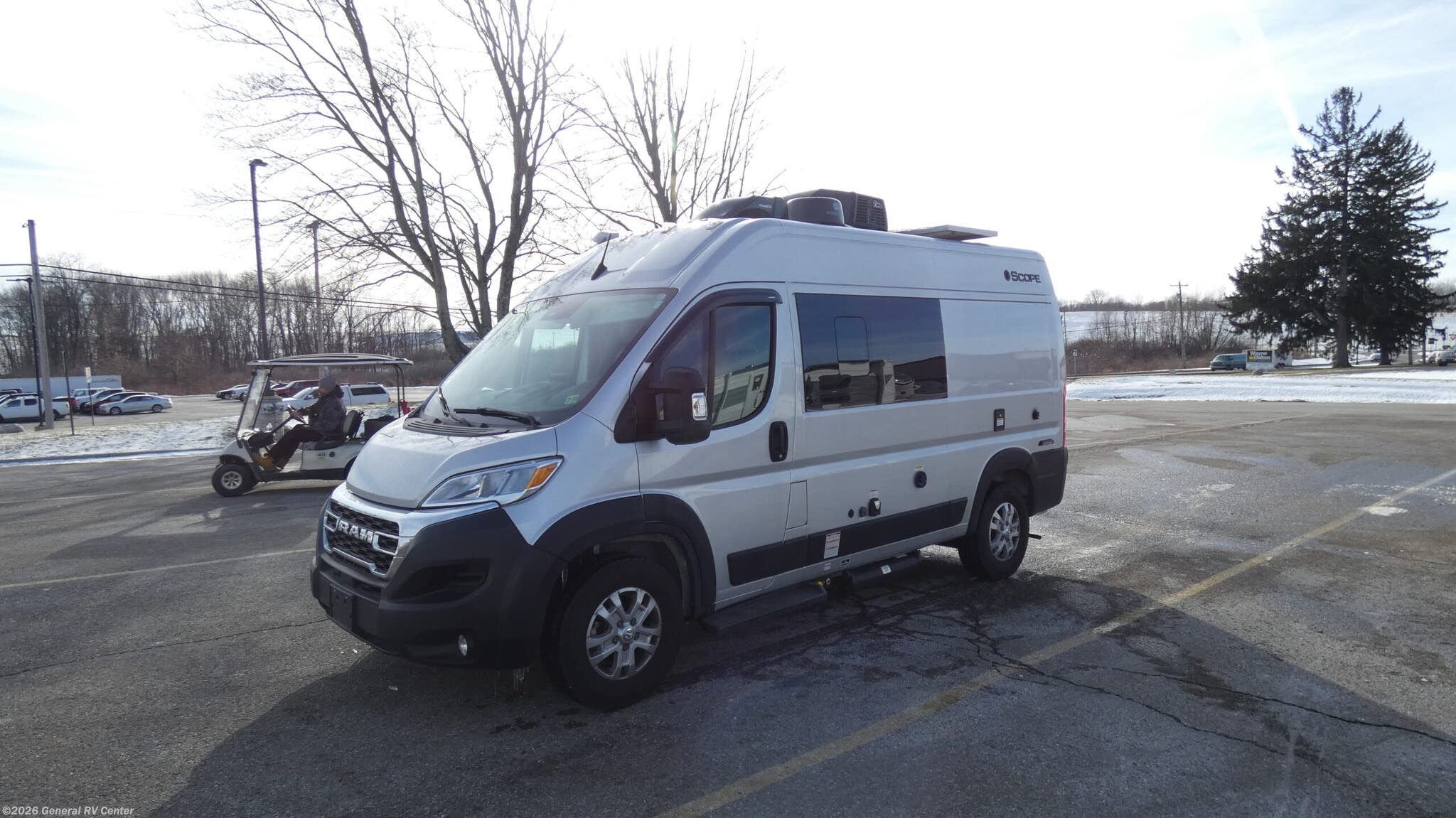 Experience the freedom of the open road with the 2024 Thor Motor Coach Scope 18M. This compact yet versatile RV is designed for those who crave adventure without sacrificing comfort. At just under 18 feet, it offers a nimble driving experience while packing in essential amenities. The front living area features swivel chairs, perfect for relaxing or entertaining guests. The center kitchen is equipped with a two-burner cooktop and a compact electric refrigerator, making meal preparation a breeze. The cleverly designed pull-out bed promises a restful night's sleep, transforming the space efficiently. A rear wet bath with a shower curtain ensures you have the essentials covered, while ample storage keeps your belongings organized. With a powerful Pentastar V6 engine on the ProMaster 3500 chassis, you'll enjoy a smooth ride and impressive towing capacity. The 10-foot powered retractable awning extends your living space outdoors, perfect for enjoying the scenery. Discover the perfect blend of functionality and style with the Scope 18M at your nearest General RV dealership.