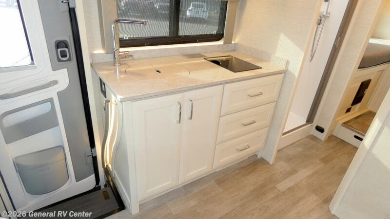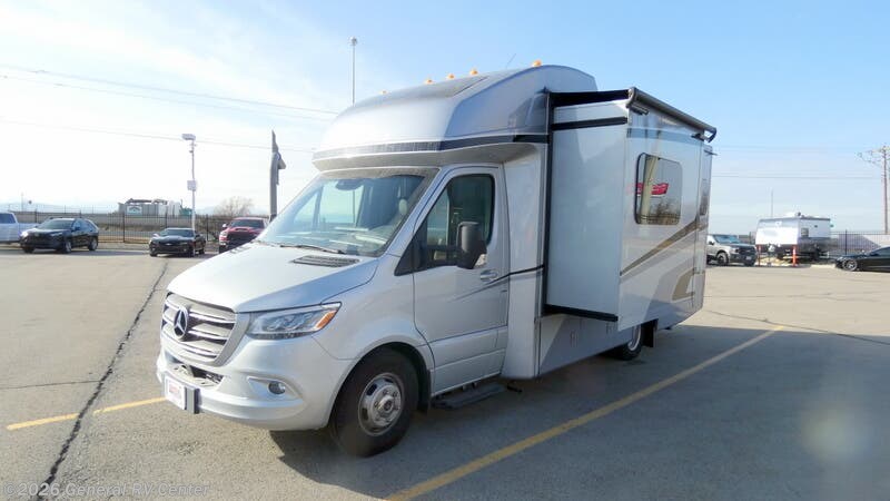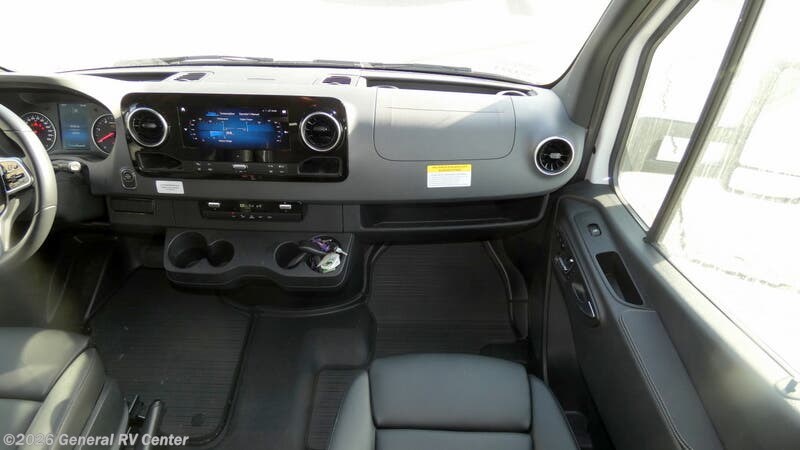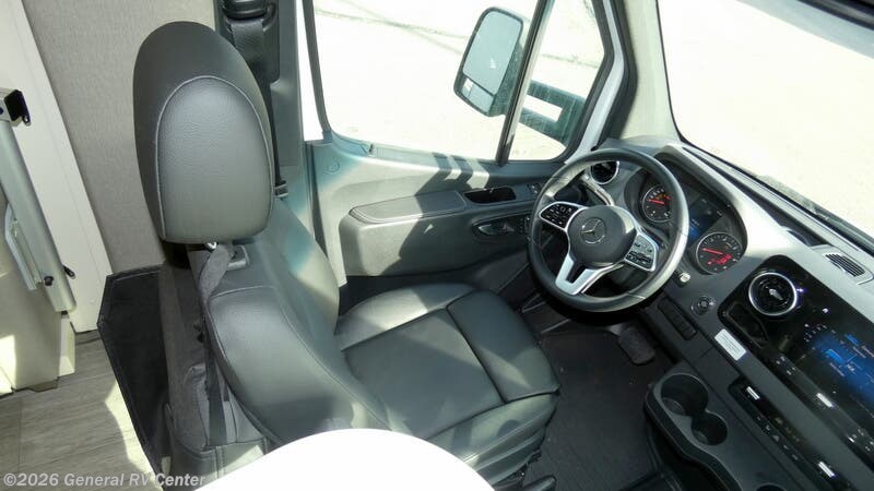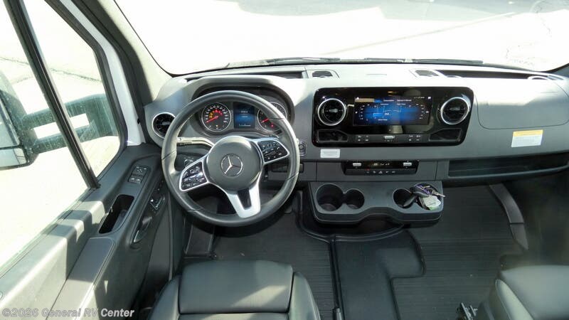 Tiffin Motorhomes Wayfarer Class C diesel motorhome 25 LW highlights: Two Twin Beds Pop-Up Closet Overhead Loft Bed 52" Tri-Fold Sofa Countertop Extension Aquaview Showermiser Head out to explore whenever the mood hits you! This coach provides a comfortable and luxurious way to travel from the cab features to the sleeping accommodations. The driver and passenger will have a tray for smartphones with charging ports, heated/electric adjustable mirrors, leather seats. You can dine at the tri-fold sofa after whipping up a meal using the kitchen appliances including a convection microwave, and the countertop extension will surely come in handy. The split bathroom includes a shower along one side and a private toilet and sink on the opposite so two people can get ready at the same time. At night, fall quickly to sleep on the rear twin beds which allow you easy access to the bathroom, plus the nightstand will come in handy to place your cellphones and drinks. You will also find shelves for storage. With any Wayfarer Class C diesel coach by Tiffin Motorhomes you will enjoy luxury features both inside and out. There is a new front and rear cap design with seamless gel-coated fiberglass plus full-body paint with two layers of clear coat for added protection. The Mercedes-Benz 3500XD dual wheel cutaway chassis provides a strong foundation, and the 3.0L V6 turbo 188 HP diesel engine will keep you going adventure after adventure! You will love the drive just as much as the destination with black leather adjustable captain's seats that are also heated, intelligent navigation, and a Mercedes-Benz MBUX multimedia system with a 10.25" touchscreen. Wherever you decide to roam, you will be met with interior comforts that include handcrafted overhead cabinetry, solar and privacy shades, solid surface galley countertops and task lighting, and a wardrobe in the bedroom to keep your space tidy. And don't overlook the exterior with motion-sensor lights in the cargo bay, a Girard side-mounted patio awning with integrated LED lighting and built-in speakers, lockable handles on the compartment doors, and so much more!