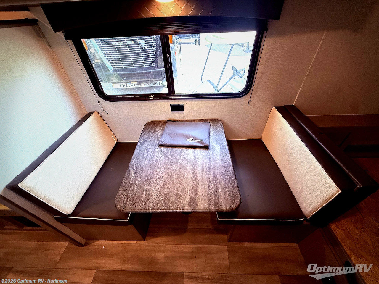 This is the perfect travel trailer for a family of four or five since it includes bunk beds for the kids, and a 54" x 74" bed up front as well as a booth dinette that can be converted to sleep one more. There is a two burner range to cook meals on, and a sink to easily clean up each day. You can dine at the booth dinette or take your plate outdoors to sit under the 10' power awning with LED lighting. This model also includes a 24" x 36" shower to get cleaned up each day, and a shower skylight for more natural lighting. Get an early start on family vacations with this travel trailer in tow!