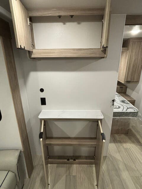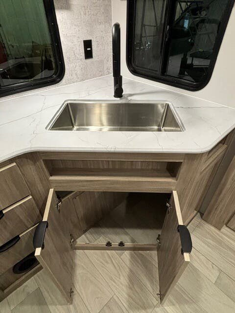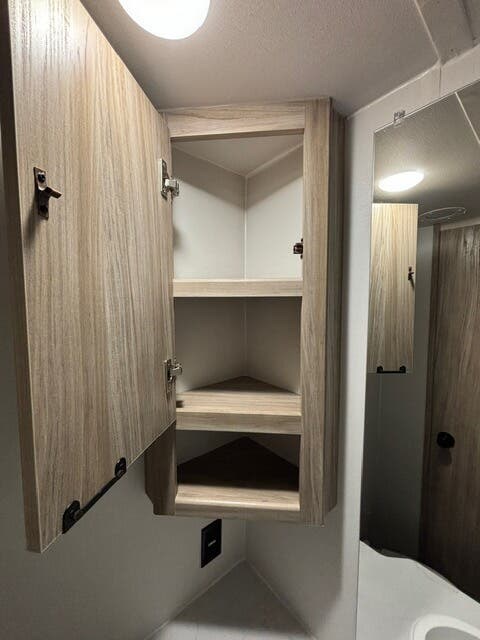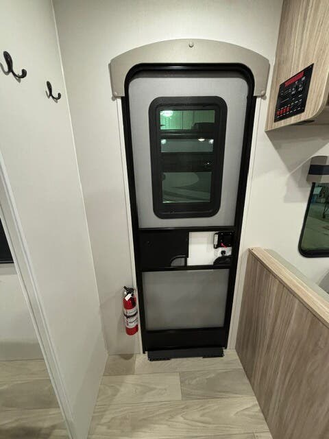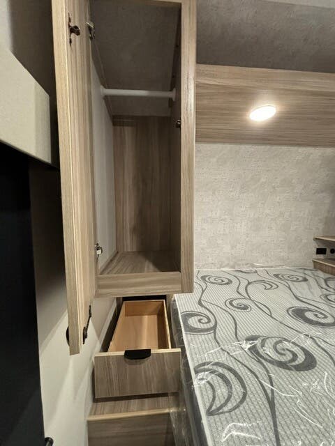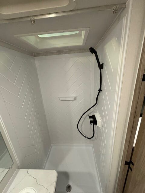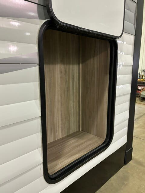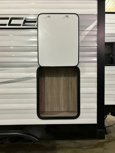 Awning, Exterior Speakers, External Shower, Hitch, Ladder, Leveling Jacks, Luggage Rack, Power Roof Vent, Skylight, Slideout, Spare Tire Kit -