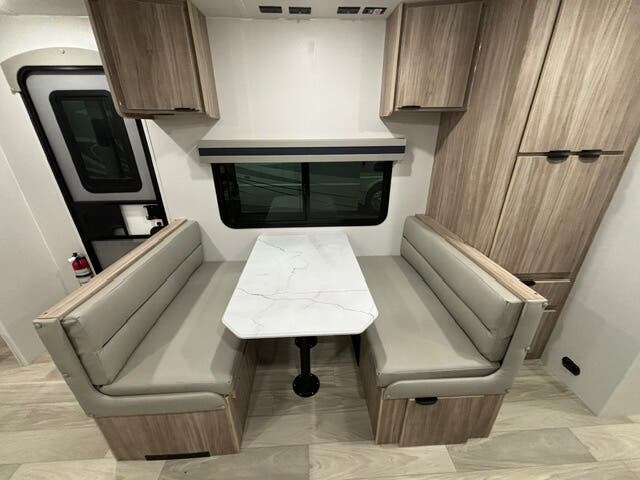 Booth Dinette, Medicine Cabinet, Queen Bed, Rocker Recliner(s), Roof Vents, Shower, Toilet -