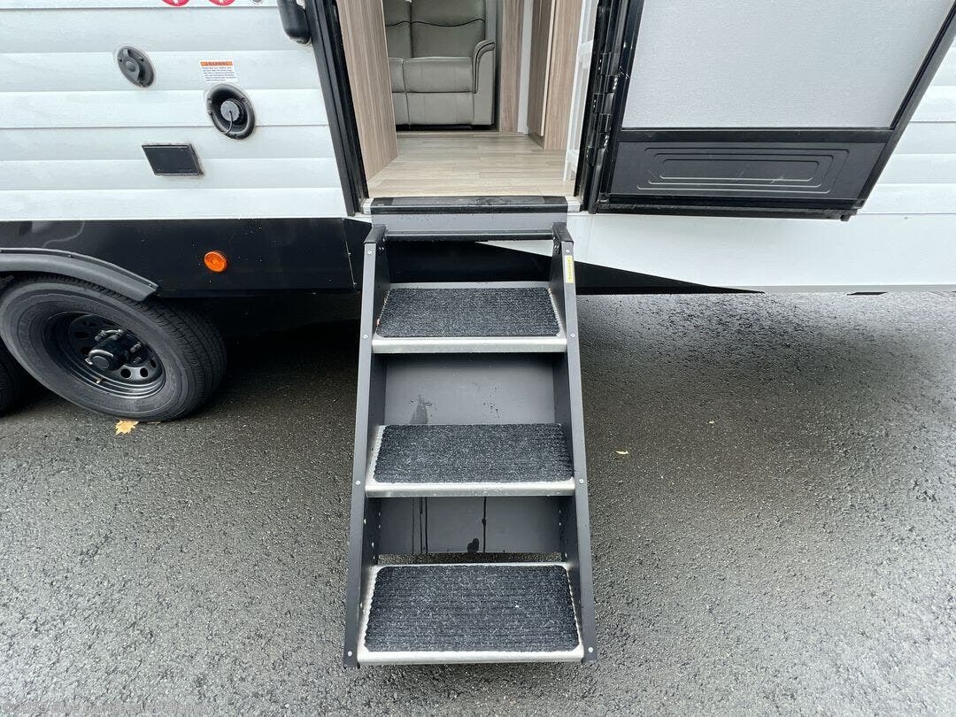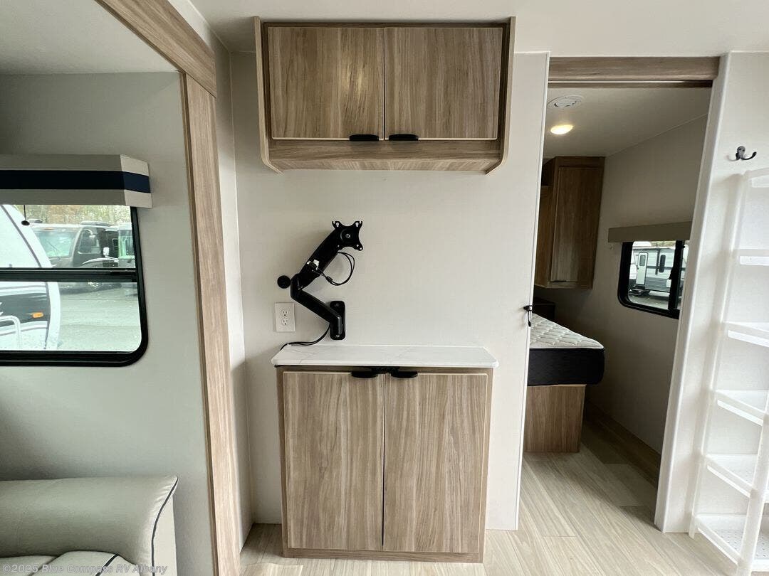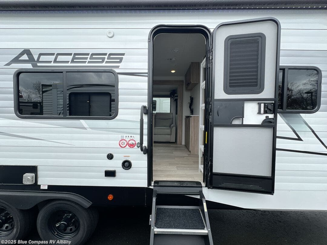 Enjoy your Access in the great outdoors! This unit features a large slide for added walking around space inside. There is sleeping for two to six depending on size and furniture choices starting with the front private bedroom featuring a space saving sliding door. You can also sleep two on the optional tri-fold sofa within the slide, and the dinette opposite can be converted for one or two little ones. You will find ample storage throughout in overhead storage cabinets, under bed storage and wardrobes, plus more. The kitchen appliances are also within the large slide, plus you will find a nice size sink in the rear roadside corner with storage both above and below. A convenient rear corner bathroom allows you to skip the use of the camp facilities and enjoy cleaning up in the privacy of your own unit. Here you will find a 30" x 36" shower, porcelain toilet and a vanity with sink and corner medicine cabinet. You will also appreciate the exterior storage door within the slide and there is also convenient pass-through storage for your larger camp items to be neatly tucked away when not in use.