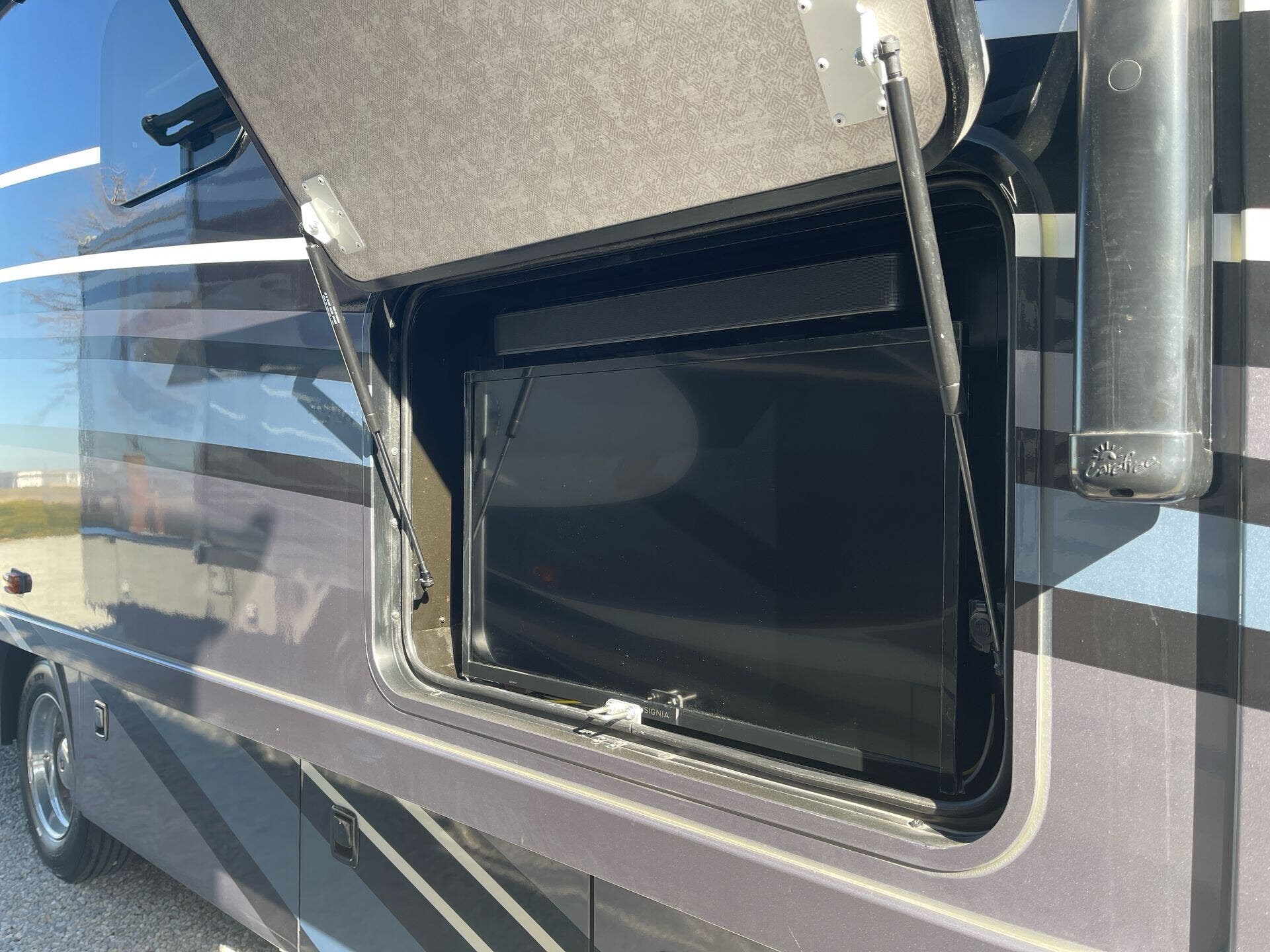 - Entertainment prep with satellite dish and TV antenna for travel versatility