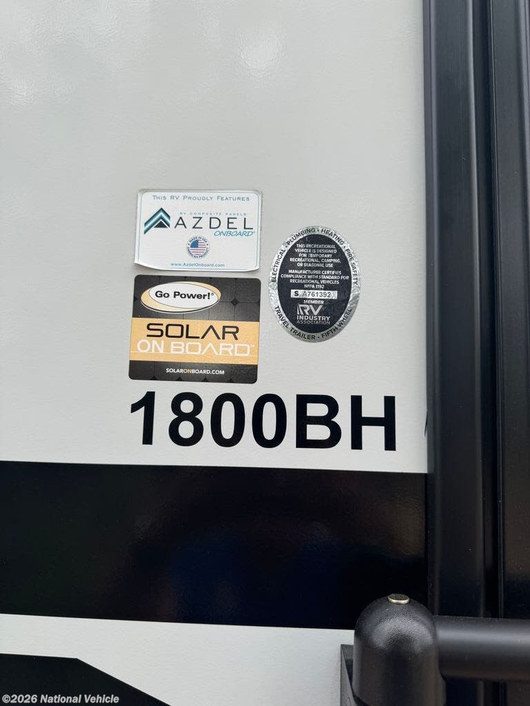 Built for extended travel and off-grid capability, the Micro Minnie 1800BH includes a 200-watt solar panel, large freshwater and holding tanks, and a fully enclosed underbelly for added durability in a variety of conditions. Outside, you?ll enjoy a power awning with LED lighting, exterior speakers, and a convenient Pack-N-Play storage door for easy access to all your gear.