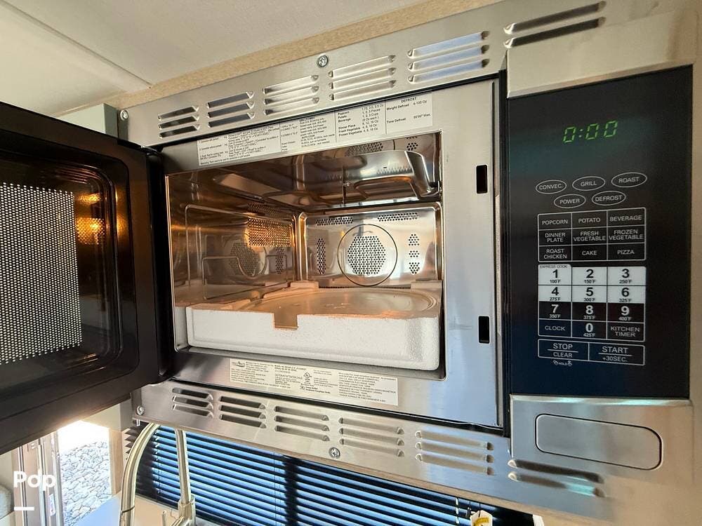 A fully equipped galley kitchen features a stainless steel sink, convection microwave, cooktop, and refrigerator, allowing you to prepare your favorite meals.
