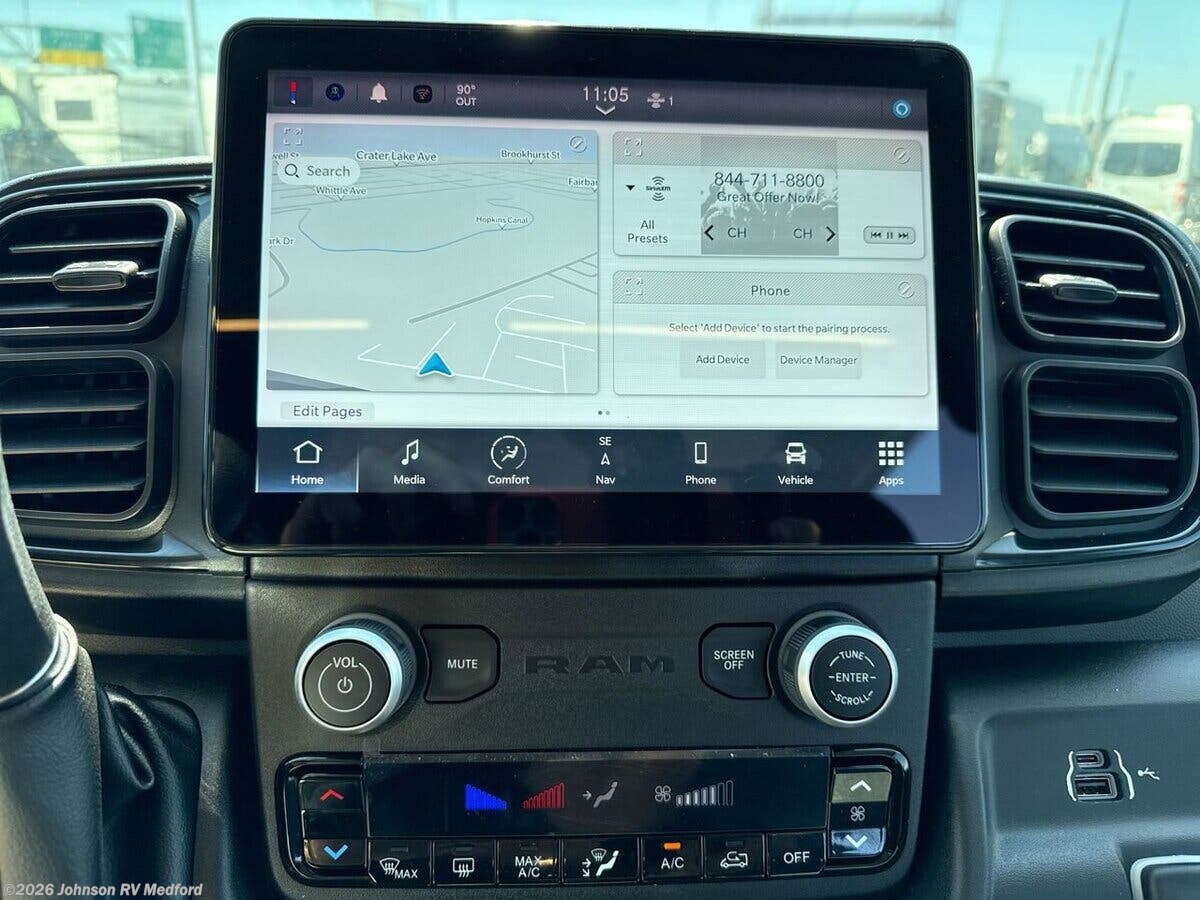 Features Include: 3.6L V6 Gas Engine, 180-Amp Alternator, 9-Speed Automatic, 4-Wheel ABS Brakes, Fog Lamps, Crosswind Assist, Traffic Sign Assist, Cab Features, Power Door Locks, Power Windows, Apple CarPlay, Android Auto, SiriusXM, Cruise Control, Applique Package, Living Spaces, Porch Light, Pet Loop Attachment, Assist Bar Handle, Gear Space Sofa Bed, Corian Countertop, Countertop Extension, Stainless Steel Sink, 12v 3cf Refrigerator, Electronics, 24-inch TV, Sofa Bed, Wet Bath, Assist Transfer Bar, Privacy Curtain, Shower Package, 30-AmpService Cord, 10-Foot Sewer Hose, Outdoor Wash Station