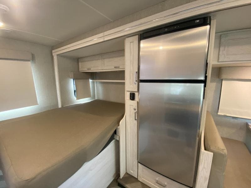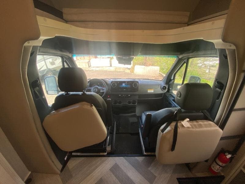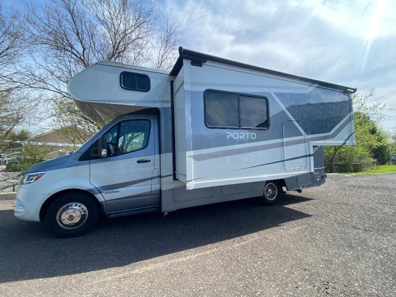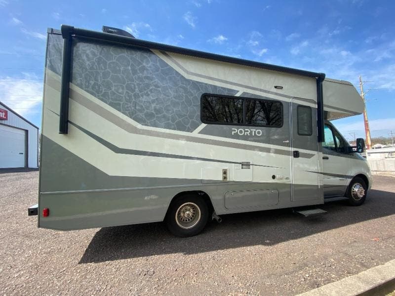 Plan to see new sights with luxurious features in a Porto Class C diesel motorhome by Winnebago. You can go off-grid if you choose with the the 2-100-watt solar panels, 3,600-watt Onan MicroQuiet LP generator, plus the largest batteries found in a Class C coach. The MBUX infotainment center with navigation and a rear camera system will make it easy to get to your locations and help ease into your camping space. These motorhomes include vinyl flooring throughout, blackout roller shades for privacy, thermoformed countertops with a decorative backsplash, plus a queen mattress with WinnSleep® technology for your comfort. Outside, you'll appreciate the power awning with LED lights that will create an inviting space, the lighted storage compartment for all your gear, plus so much more!
