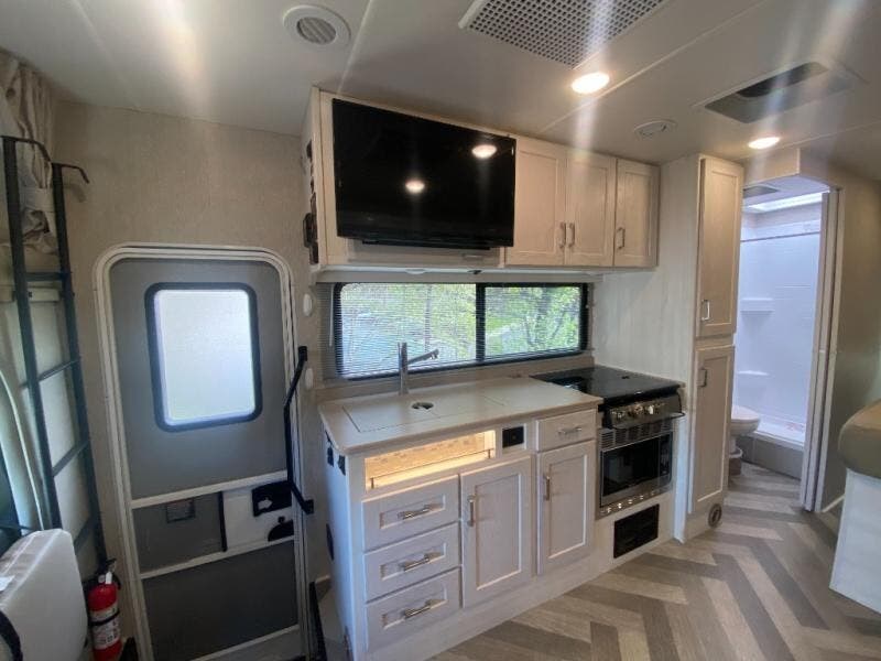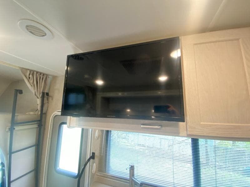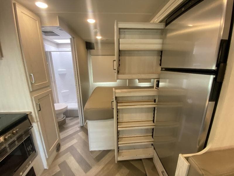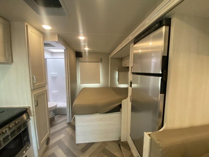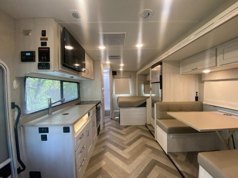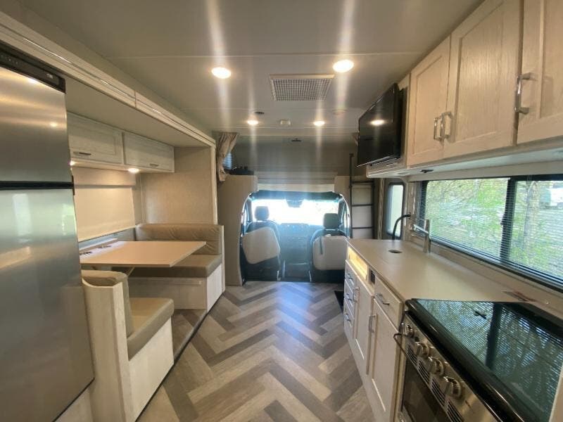 You and your family will love the convenience of traveling in this Porto Class C diesel motorhome and there is room to sleep four. The kids or your guests can sleep on the 49" x 87" cabover bed or the booth dinette once converted, and you will enjoy the queen bed. The full-wall slide will provide the chef space to cook meals, while the kids play a game on the floor. The full bath includes a space-saving sliding bi-fold door, a convenient medicine cabinet, plus a shower skylight to allow natural light in. You can spend your evenings inside watching a show on the 32" Smart LED HDTV, or if the weather is nice you can sit outside under the 15' power awning with LED lights! This model also includes plenty of storage space including a pantry and wardrobe, plus exterior storage for your tackle box or outdoor gear!