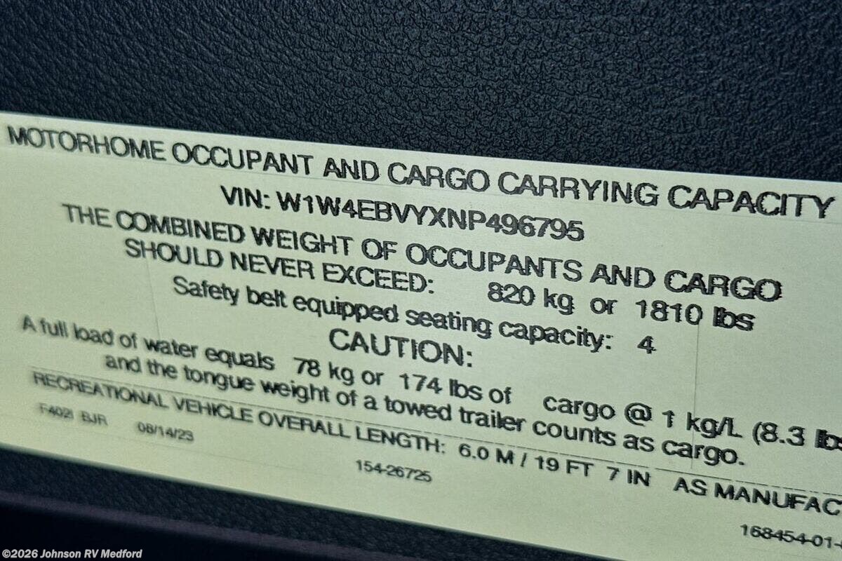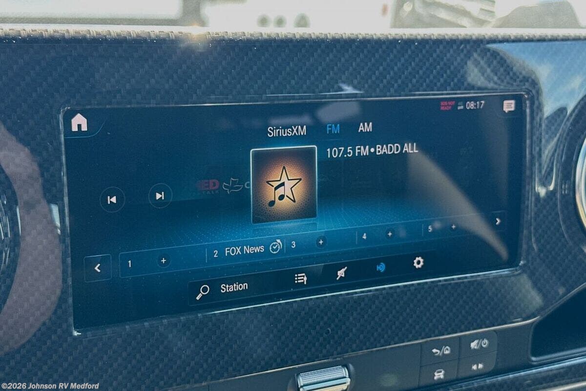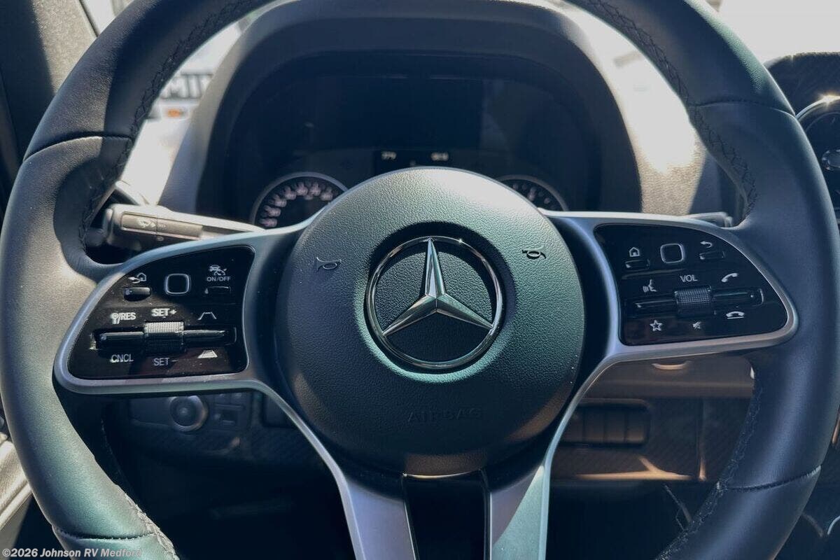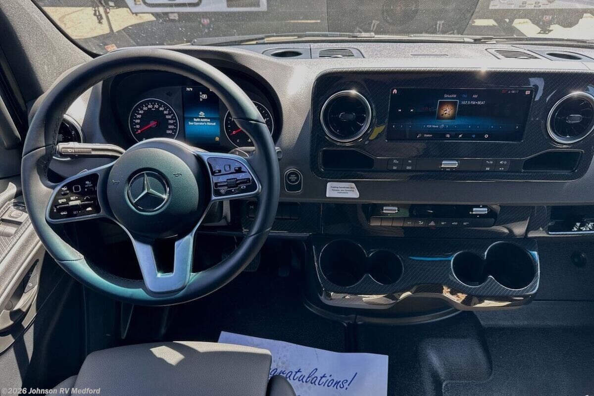 Features Include: 188 HP, 7G-Tronic Automatic, 220-Amp Alternator, 4-Wheel ABS Brakes, Spare Tire, Rear Mud Guards, Active Brake Assist, Blind Spot Assist, Traffic Sign Assist, Rain Sensor Wipers, Pet Leash Attachment, Keyless Entry Remote, Power Door Locks, Power Windows, Sunvisors, Dual Airbags, Navigation, WiFi Hotspot, Awning, Porch Light, Cassette Shades, Laminate Countertops, 12v Fridge/Freezer, Stainless Steel Sink, Induction Range, Power Lift Bed, Side Screen Door, Shower Curtain, 30-AmpService Cord, GFCI Circuit, Heated Holding Tanks, Hydronic Heat System, 10-foot Sewer Hose
