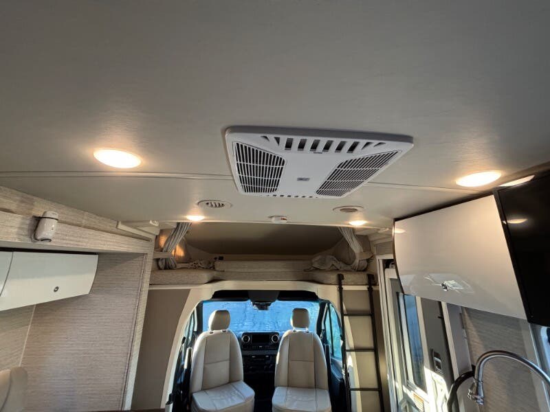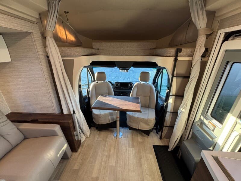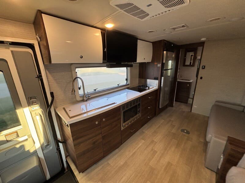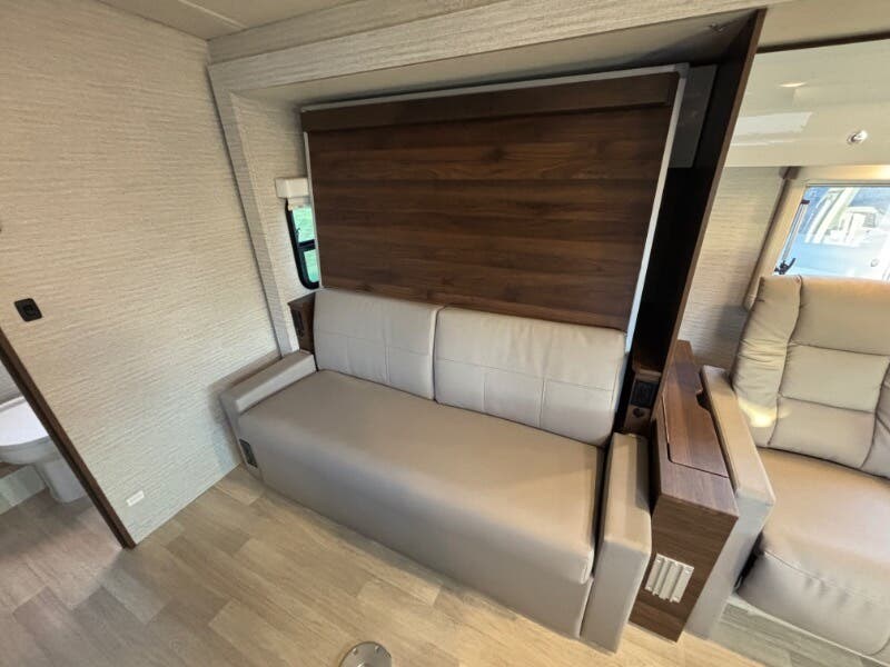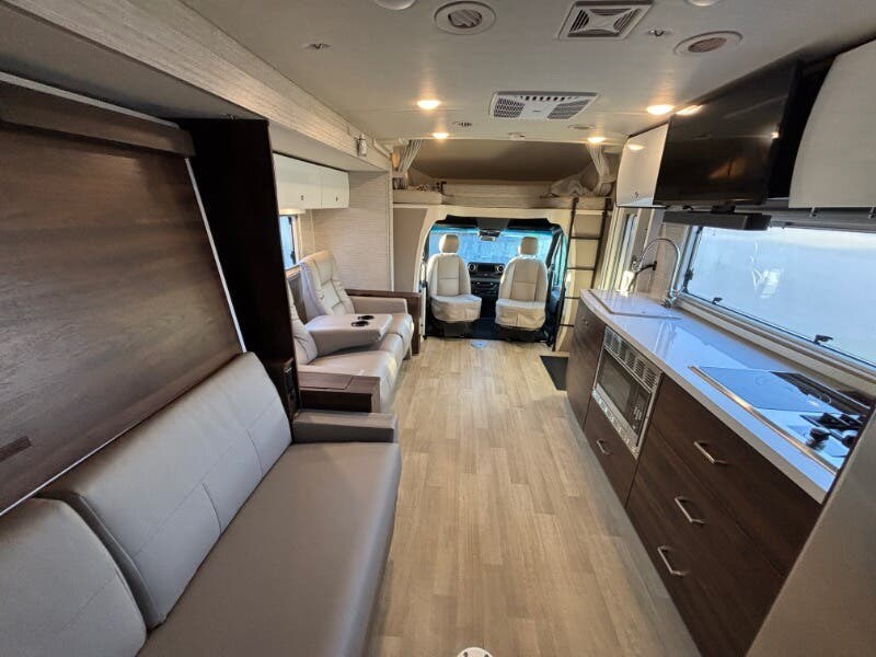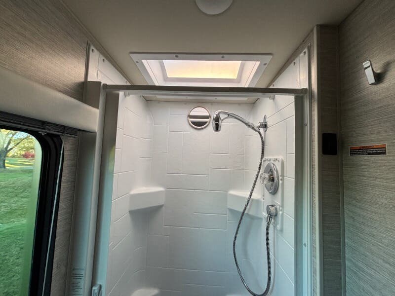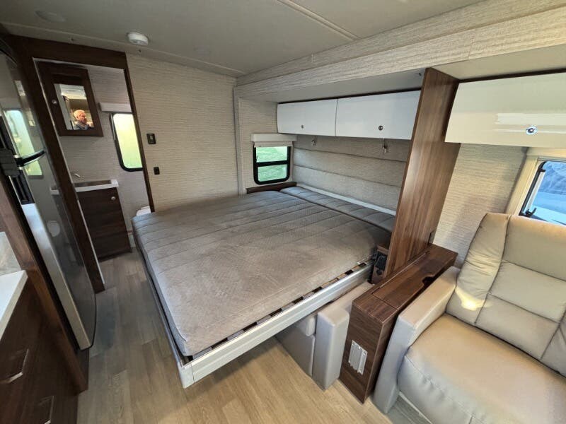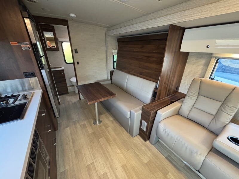 Features Include: 188 HP, 220-Amp Alternator, Attention Assist, Hill Start Assist, Crosswind Assist, Electric Lift, Thermostat, Remote, Swivel, Slide, Recline, Lumbar Support, Color Rear Camera, Navigation, WiFi Hotspot, Tilt Steering Wheel, Power Windows, 12v USB Powerpoints, Climate Control, Automatic Entry Step, Entry Assist Bar, Soft Vinyl Ceiling, Tinted Coach Windows, Pantry (vbm), Laminate Countertops, Two Sink Covers, High Rise Faucet, Antenna Jack, WiFi Hotspot, Entertainment System, Room Divider Curtain, 24-inch LED TV (vbm), Charging Station, Wardrobe Cabinet, Medicine Cabinet, Tissue Holder, Robe Hooks, Shower Skylight, Solar Controller, 30-Amp Service Cord, GFCI, Load Converter Unit, Color-Coded Labels, 10-foot Sewer Hose, Water Heater Bypass, High-Gloss Exterior, Fiberglass Roof, Ladder