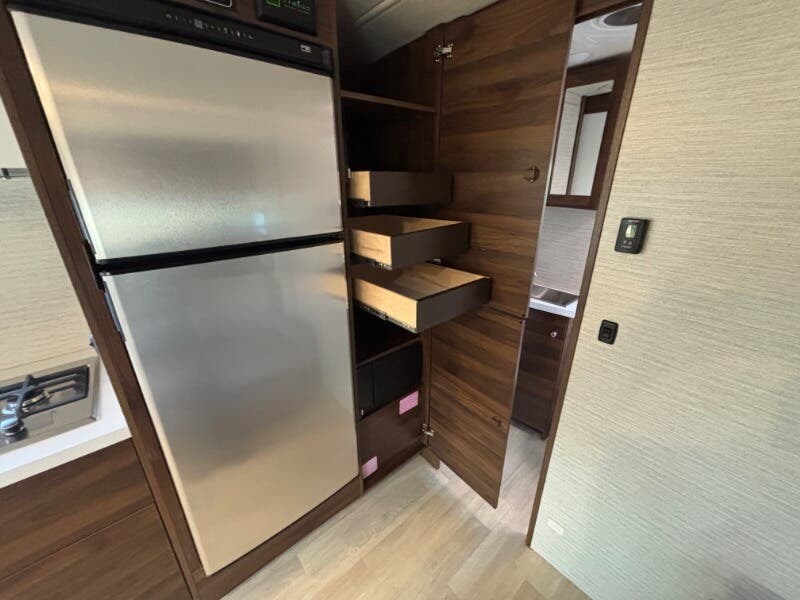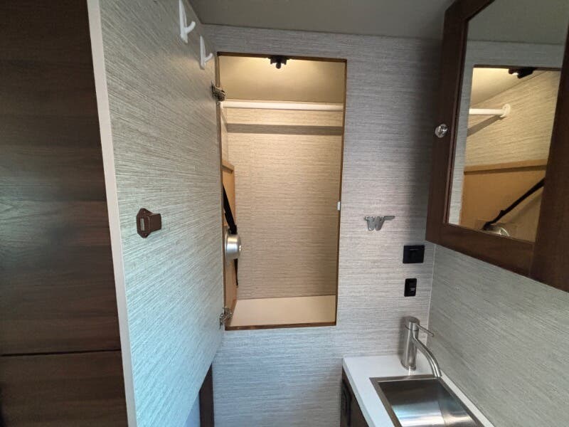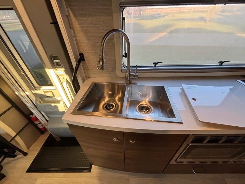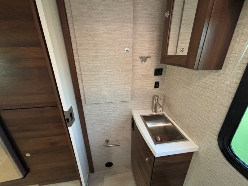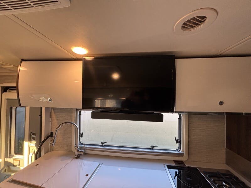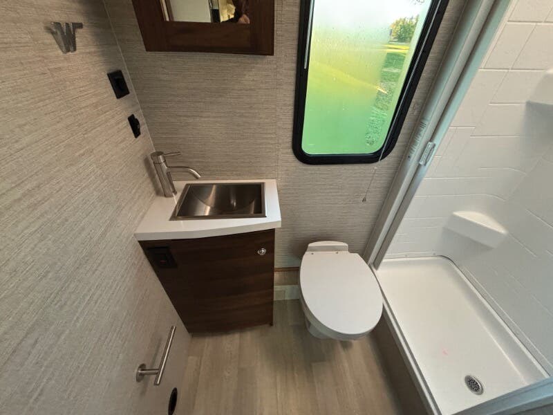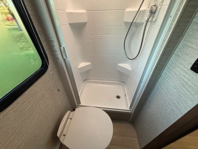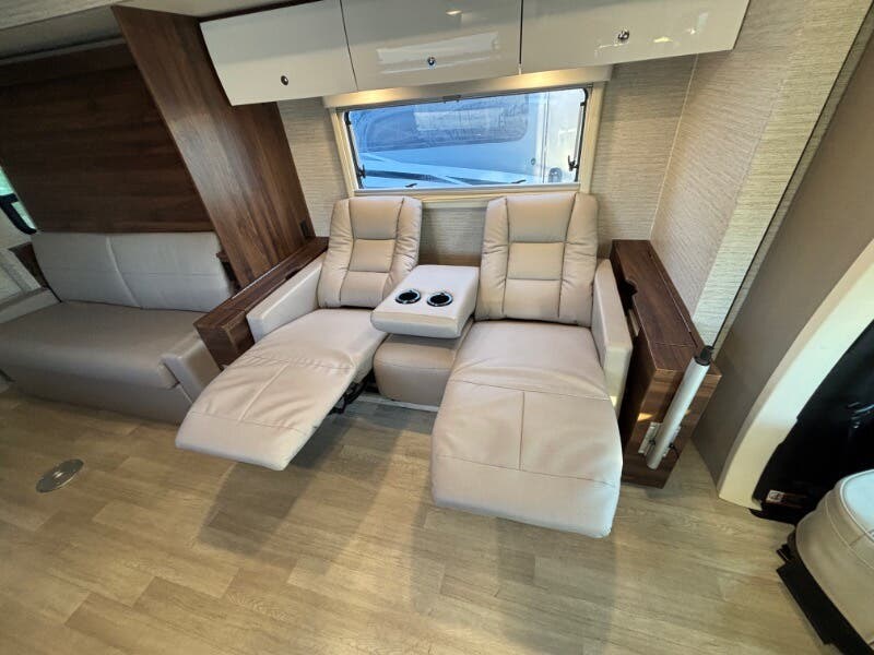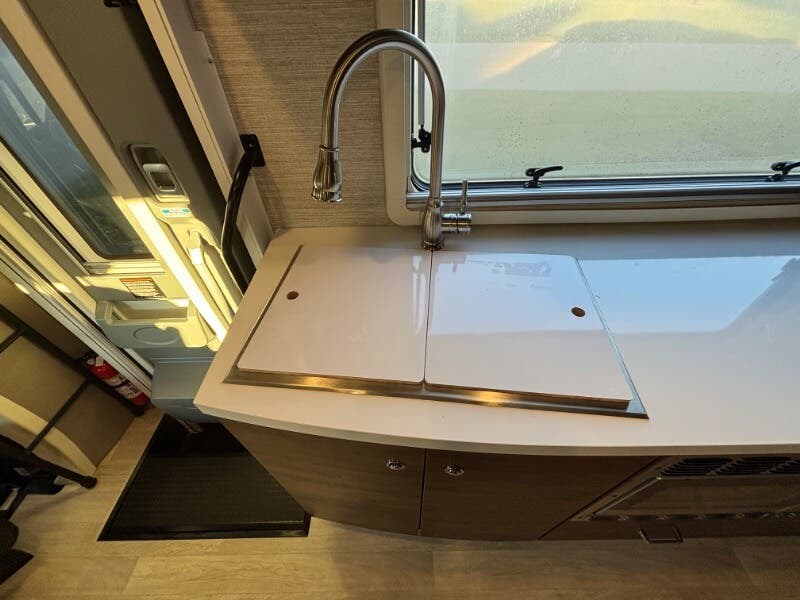 Features Include: 188 HP, 220-Amp Alternator, Attention Assist, Hill Start Assist, Crosswind Assist, Electric Lift, Thermostat, Remote, Swivel, Slide, Recline, Lumbar Support, Color Rear Camera, Navigation, WiFi Hotspot, Tilt Steering Wheel, Power Windows, 12v USB Powerpoints, Climate Control, Automatic Entry Step, Entry Assist Bar, Soft Vinyl Ceiling, Tinted Coach Windows, Pantry (vbm), Laminate Countertops, Two Sink Covers, High Rise Faucet, Antenna Jack, WiFi Hotspot, Entertainment System, Room Divider Curtain, 24-inch LED TV (vbm), Charging Station, Wardrobe Cabinet, Medicine Cabinet, Tissue Holder, Robe Hooks, Shower Skylight, Solar Controller, 30-Amp Service Cord, GFCI, Load Converter Unit, Color-Coded Labels, 10-foot Sewer Hose, Water Heater Bypass, High-Gloss Exterior, Fiberglass Roof, Ladder