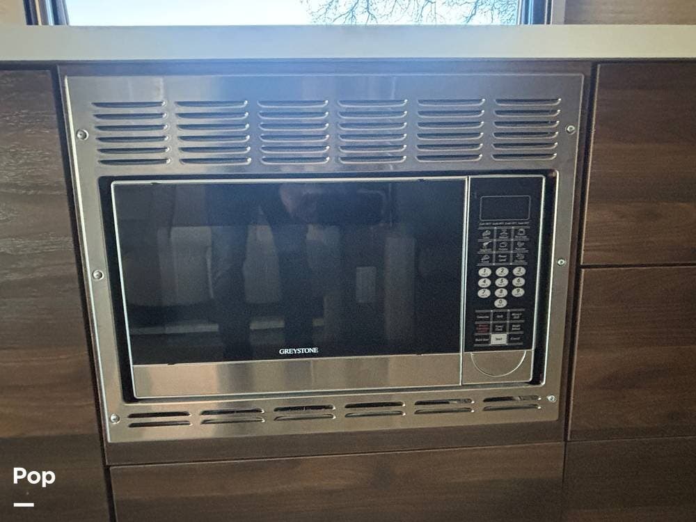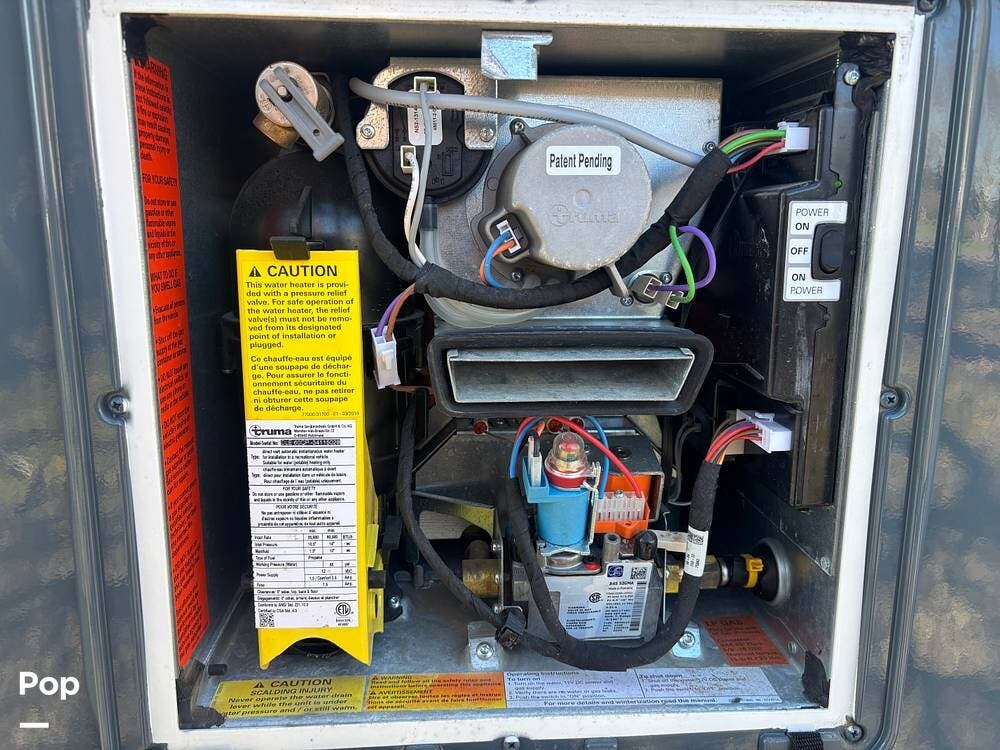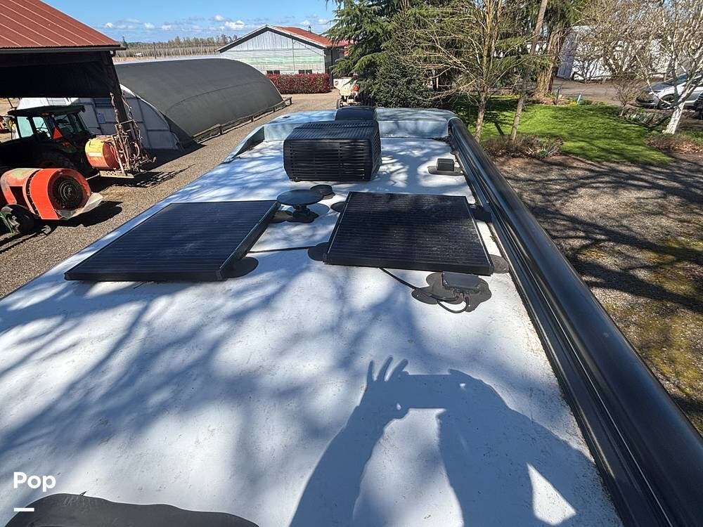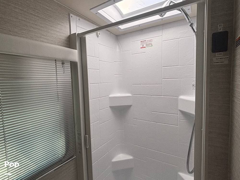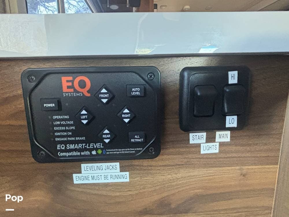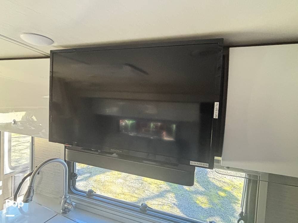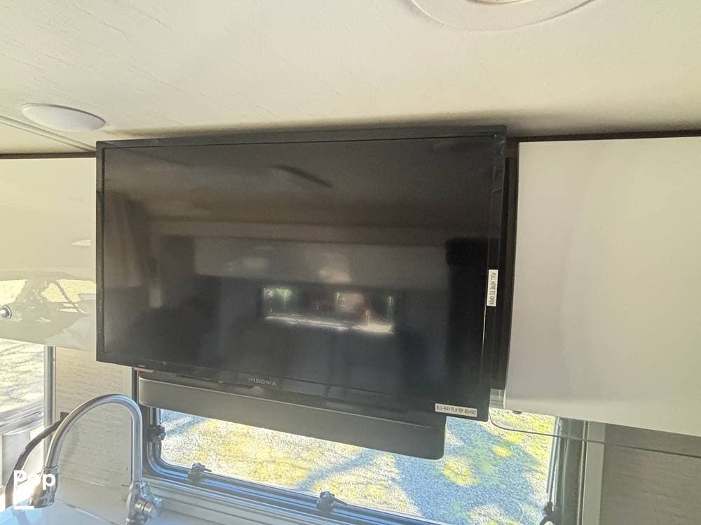 Stay connected with navigation, Bluetooth audio, JBL soundbar, TV, and charging ports. Exterior features include awning, ladder, storage, and shower.