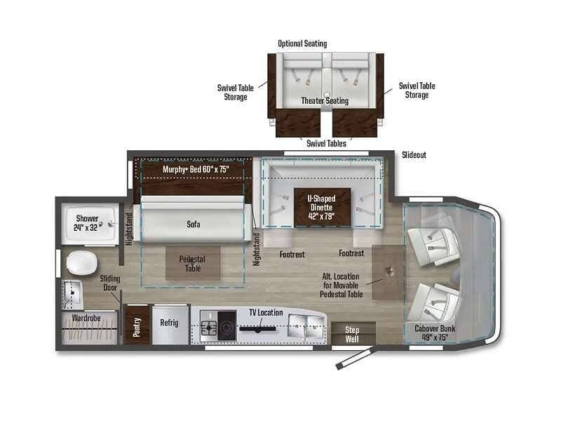 This 2024 View 24D is powered by a 3.0L V6 engine delivering 188 hp. Built for easy travel and setup, this coach is self-contained with generator, solar support, leveling jacks, and backup monitor. Sleeps up to 4 with a cabover bed and queen Murphy bed.