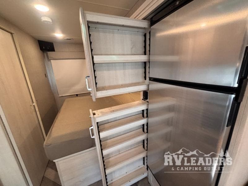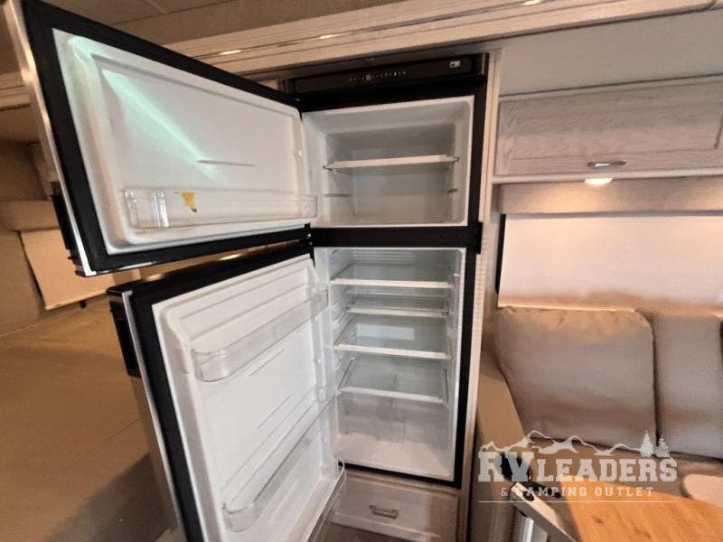 Spacious living is what this Vita Class C diesel is all about. This motorhome features sleeping space for five or six depending on your size with a rear queen bed, a dream dinette that is 40" x 70" and can be transformed into sleeping space if you like, plus an over cab bunk at 49" x 87" that could sleep two children or an adult. You can easily cook all of your meals with a three burner cooktop, and convection microwave oven below. A refrigerator and pantry are located within the full-wall slide next to the dinette for all of your food storage needs. You can choose the optional theater seating with a pedestal table for two if you don't need as much space for dining or added sleeping. The rear corner bath opposite the 60" x 75" queen bed is a convenience that you will appreciate as you travel featuring a 24" x 32" shower, toilet, and corner sink with overhead storage. The bath features a sliding bi-fold door for privacy. This unit also features plenty of storage both inside and out with overhead cabinets, nightstands, wardrobe storage for your clothing, and an exterior storage door along the slide at the back of the refrigerator and pantry that is easily accessible, plus so much more!