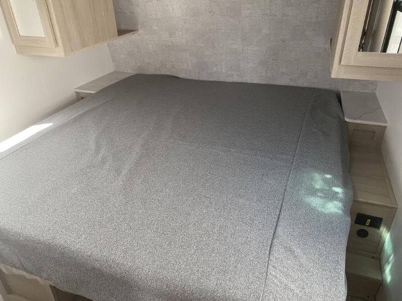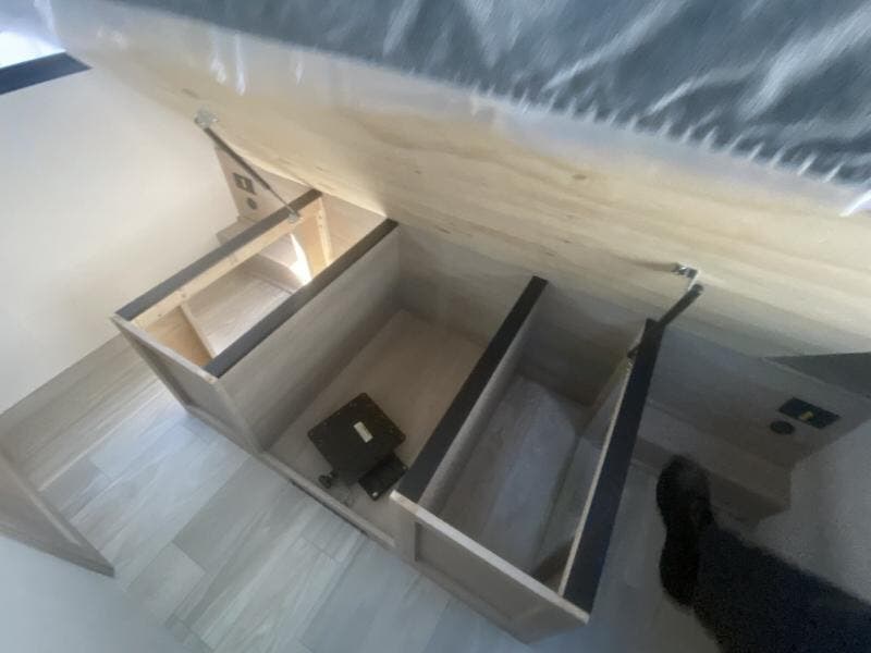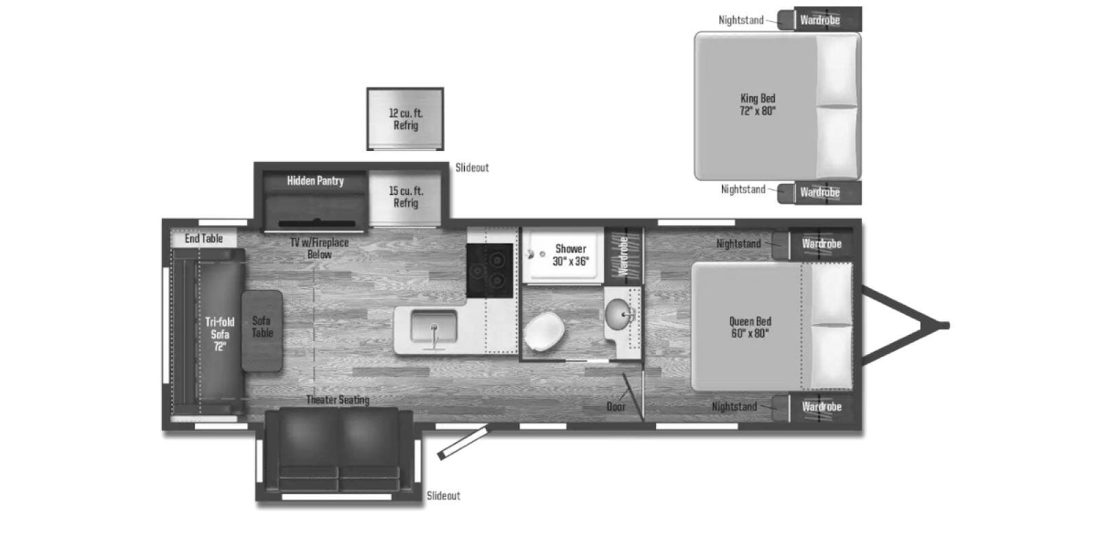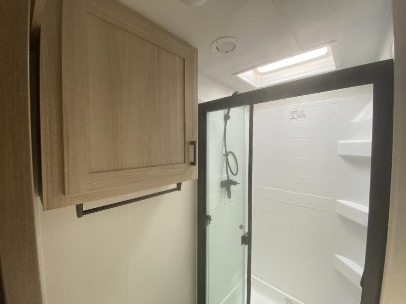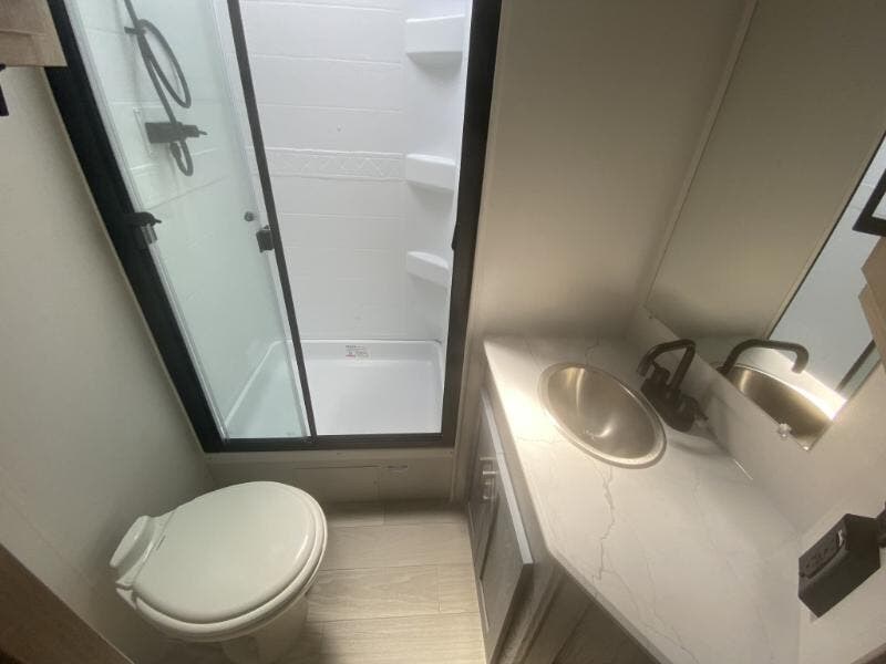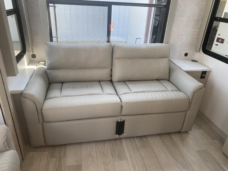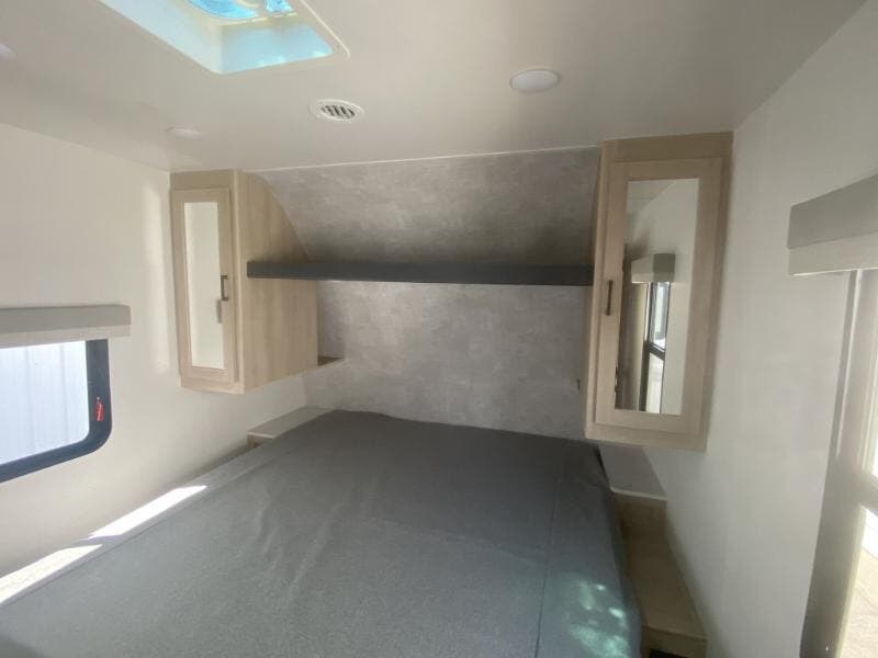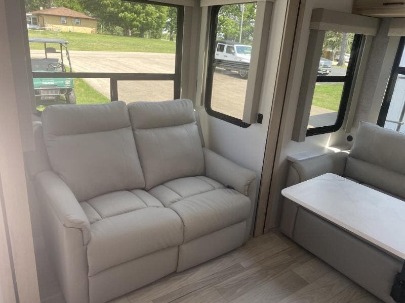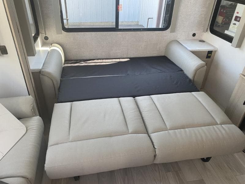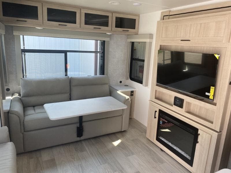Features Include: Ductless Flooring, Ceiling LED Lighting, Tinted Safety Glass, Tri-Fold Sofa, Fireplace, Glass Cooktop Cover, Oven, Power Vent Fan, Smart TV, 60x80 Queen Bed, Glass Shower Door, Shower Skylight, Bathroom Heat and AC, Porcelain Toilet, 200w Solar Panel, Inverter Prep, Two 30# LP Bottles, 2nd AC Prep, 30k Furnace, 10-Gal Hot Water, 12v Tank Pad Heaters, NXG Engineered Frame, Aluminum Wheels, Spare Tire, FILON MAX Sidewalls, Roof Ladder
