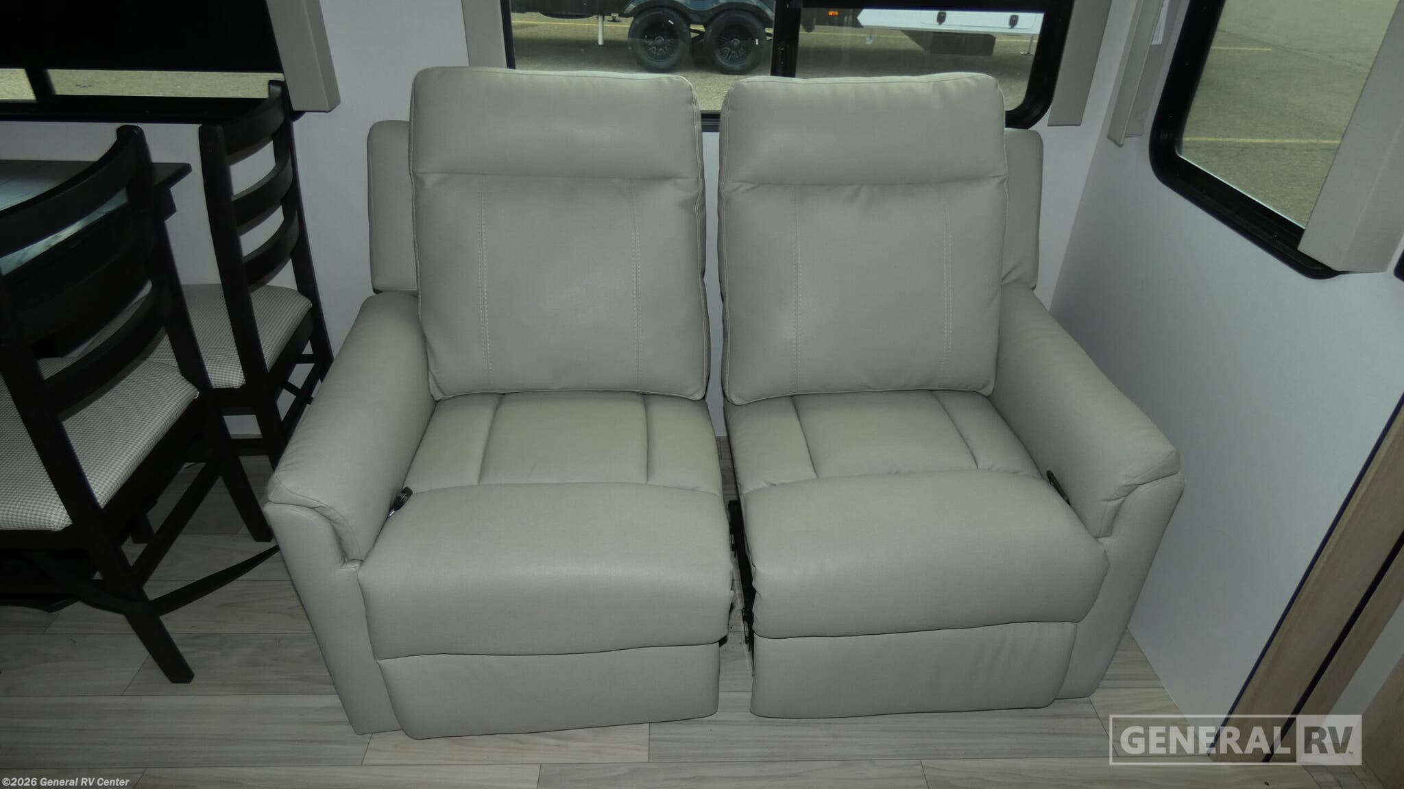 ## Winnebago Industries Towables Voyage travel trailer V3235RL highlights - Rear Living Area - Dual Opposing Slides - Kitchen Island - Theater Seating - Hutch - Front Private Bedroom You camp because you love the outdoors, and you won't have to give up creature-comforts when you have this trailer at your campsite! The interior is spacious with dual opposing slide outsin the main living area that you can enjoy while you sit back on theater seating or at the free-standing table with chairs while watching the Smart TV opposite. A tri-fold sofa with end tables can be found along the back wall which will provide more seating and additional sleeping space. The cook will love the kitchen island, the hutch for dishes, and the appliances including aconvection microwave, and the large pantry. All will enjoy having a full bathroom with a large skylight and residential bath fixtures, and the private bedroom with its King-size bed is going to provide a peaceful night's rest after a fun day of camping. Each Voyage travel trailer by Winnebago Industries Towables includes two 100-watt solar panels with a charge control monitor so you can camp off-grid, satellite and antenna connections, and an antenna with Wi-Fi prep. Also included is a heated and enclosed underbelly with radiant foil insulation for four seasons of travel, 2" thick FILONĀ® MAX fiberglass sidewalls and a painted gel coat front cap with integrated LED lighting, a walk-on roof, plus power stabilizers for easy setup and stability. The interior offers many comforts of home, large windows, ceiling LED lights, ductless flooring throughout, and full kitchen amenities. No voyage is better than the one taken in a Voyage travel trailer! Come choose your model today!