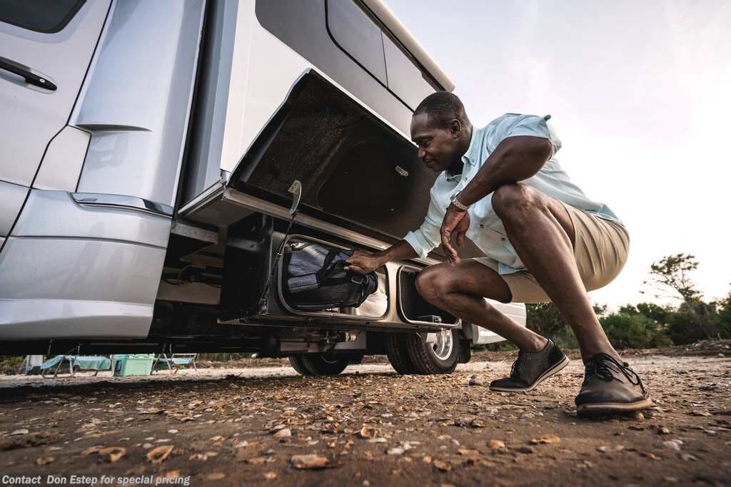 - LED Lighting - patio, service box locations, adjustable awning, under carriage