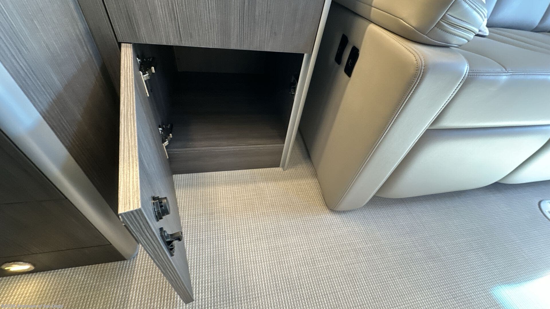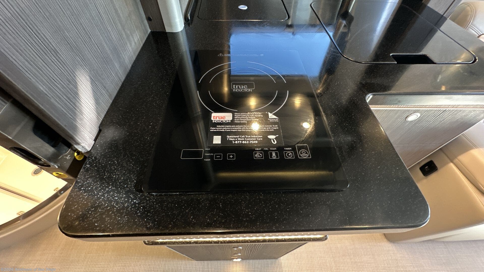 Get ready to explore, unwind and "glamp" where ever you decide! This coach brings you everything you will need, plus much much more! The power slide offers a Murphy suite that retracts and fits seamlessly with the luxury automotive body style. With a touch of a button on the multiplex control panel, you will have more floor space to relax on the reclining sofa that includes two seatbelts or pull down the Murphy bed at night. There is more seating on the captain's chairs that swivel around to face the interior, and there are two tables that adjust to different heights for your needs. The kitchen provides a two-burner gas stove and large stainless steel Kohler sink and faucet, and there is a convection microwave, a slide-out pantry and a refrigerator with a freezer a few steps away.