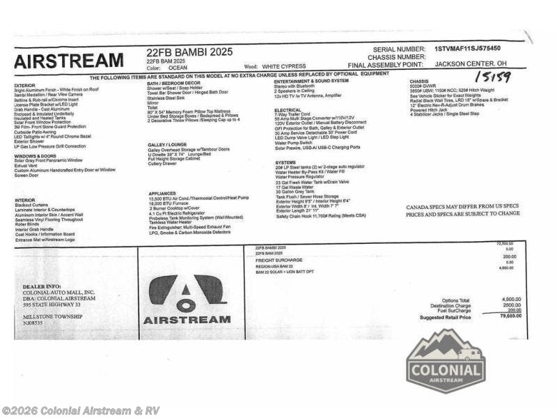 Request More Info on this 2025 Airstream Bambi 22FB Offered for sale by Colonial Airstream & RV