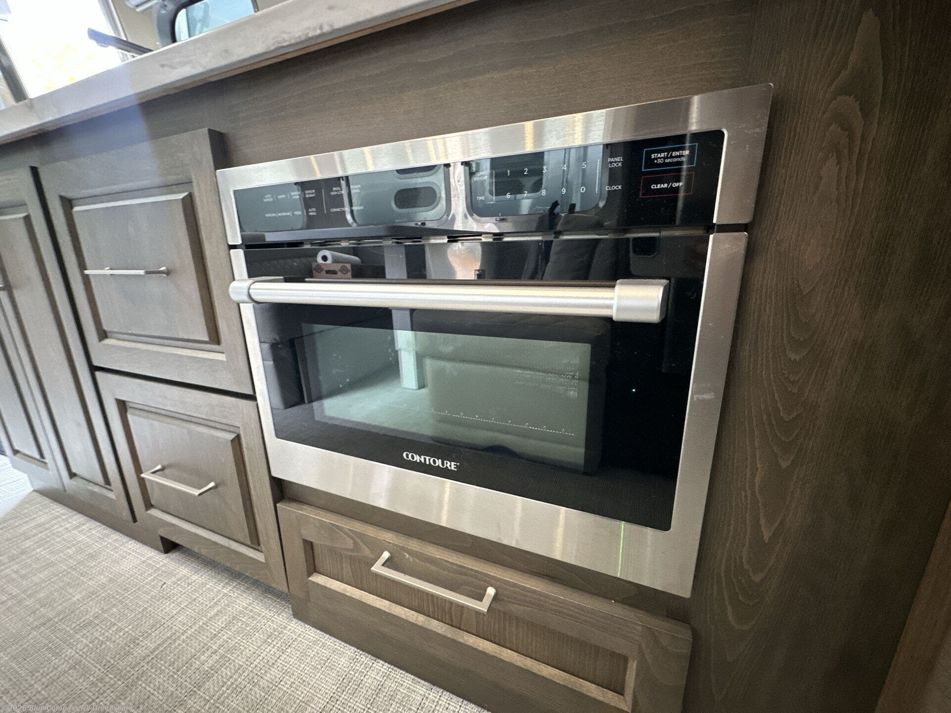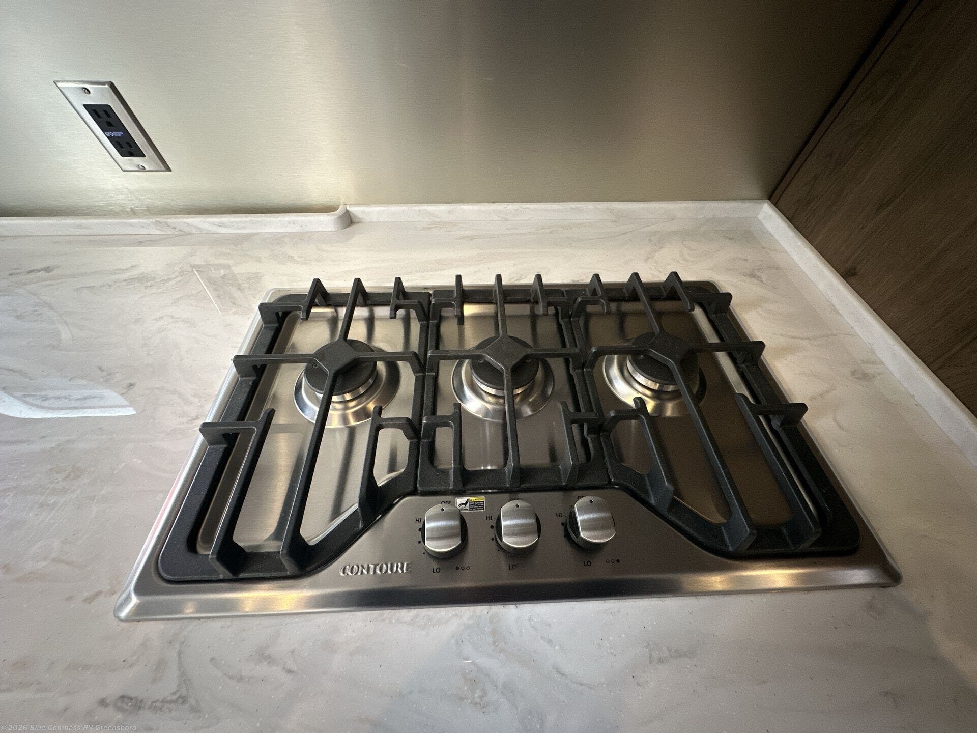 You'll have everything you need for a luxurious stay in this cozy travel trailer. The rear bedroom includes a power queen bed so you can adjust the head if you like to read at night, plus there are nightstands on either side of the bed for your phone, glasses, and a cup of water. You might also like to choose the optional twin beds in place of the queen bed, depending on your needs. The private toilet and vanity features plenty of counter space for your necessities, and the independent shower is just across the hall with its own door for privacy. Your crew will love to relax on the front powered lounge that has a perfect view of the 32" Smart TV with Bluetooth and this space can be converted to sleeping space for your guests, along with the powered dinette.
