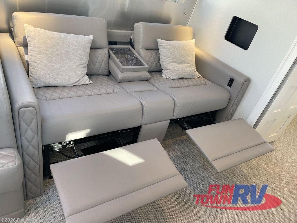 When it comes to full-time luxury living on the road, none other will do than a Classic travel trailer by Airstream. The sophisticated interior includes Ultraleather seating, a luxurious bathroom, handcrafted hardwood cabinetry, and a top-of-the-line kitchen with premium appliances. You will appreciate the rear-view monitoring system to easily park your trailer at the campsite, plus there are four powered heavy duty stabilizer jacks for easy set up. After you've unpacked, set up the powered ZipDee patio awning and adjust the LED dimmable awning light as you enjoy a cold drink. The Classic travel trailers also include QuiteStream climate control that cools your unit quietly and evenly for a truly comfortable environment! Additional features you'll appreciate include a doorbell, a safe for valuables, two cushion ZipDee chairs, and premium environmental friendly insulation.