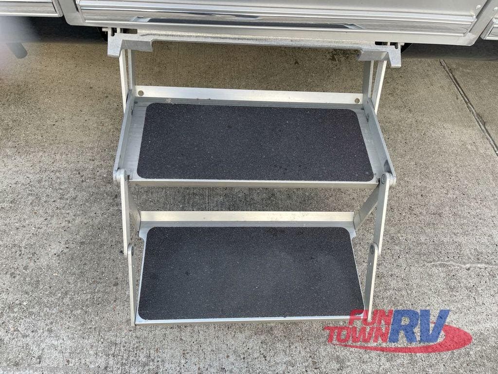 This travel trailer with power twin beds allow you to camp with your spouse or friend, so pack up for adventure! The front bedroom also includes a shared nightstand for your valuables and two closets to hang clothes. You'll love the lift TV and new Klipsch audio sound system, including four speakers so you can listen to your favorite tunes Head to the full rear bath to get clean up each day, and you'll appreciate the residential-style shower with a heated towel bar for added comfort.