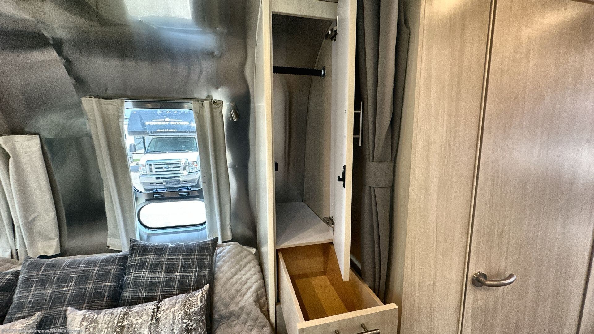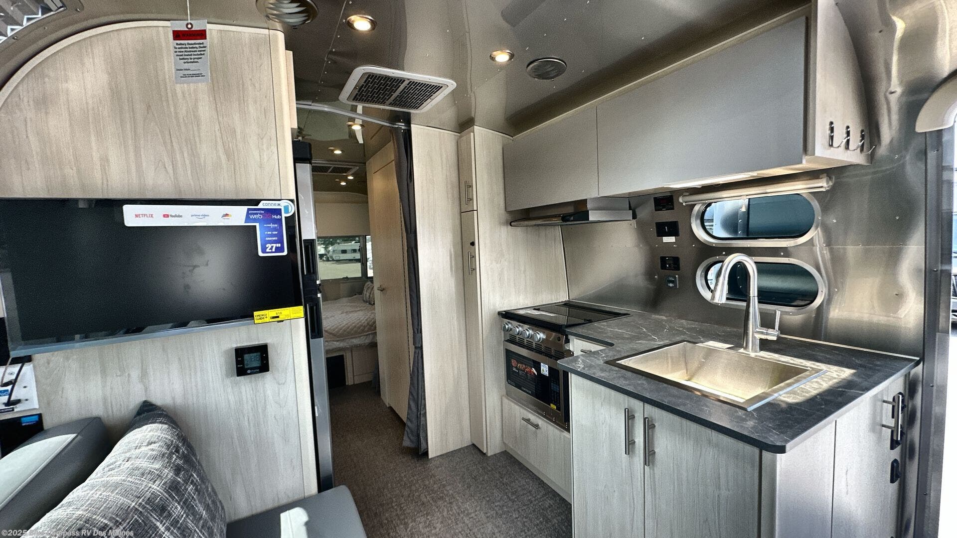 The family-friendly and popular Flying Cloud travel trailers by Airstream are built for ease of towing with a rear-view camera to make reversing and parking easier and stainless steel front stone guards to protect the lower segments from road debris. The iconic Airstream design is created outside and inside by the semi-monocoque aluminum superstructure, the temperature reducing one-piece white aluminum roof, the panoramic front windows, and the stylish aluminum wheels. The interior will have you feeling right at home with handcrafted cabinetry, plenty of storage and counter space, sleek roller blinds and blackout curtains, plus residential style faucets!