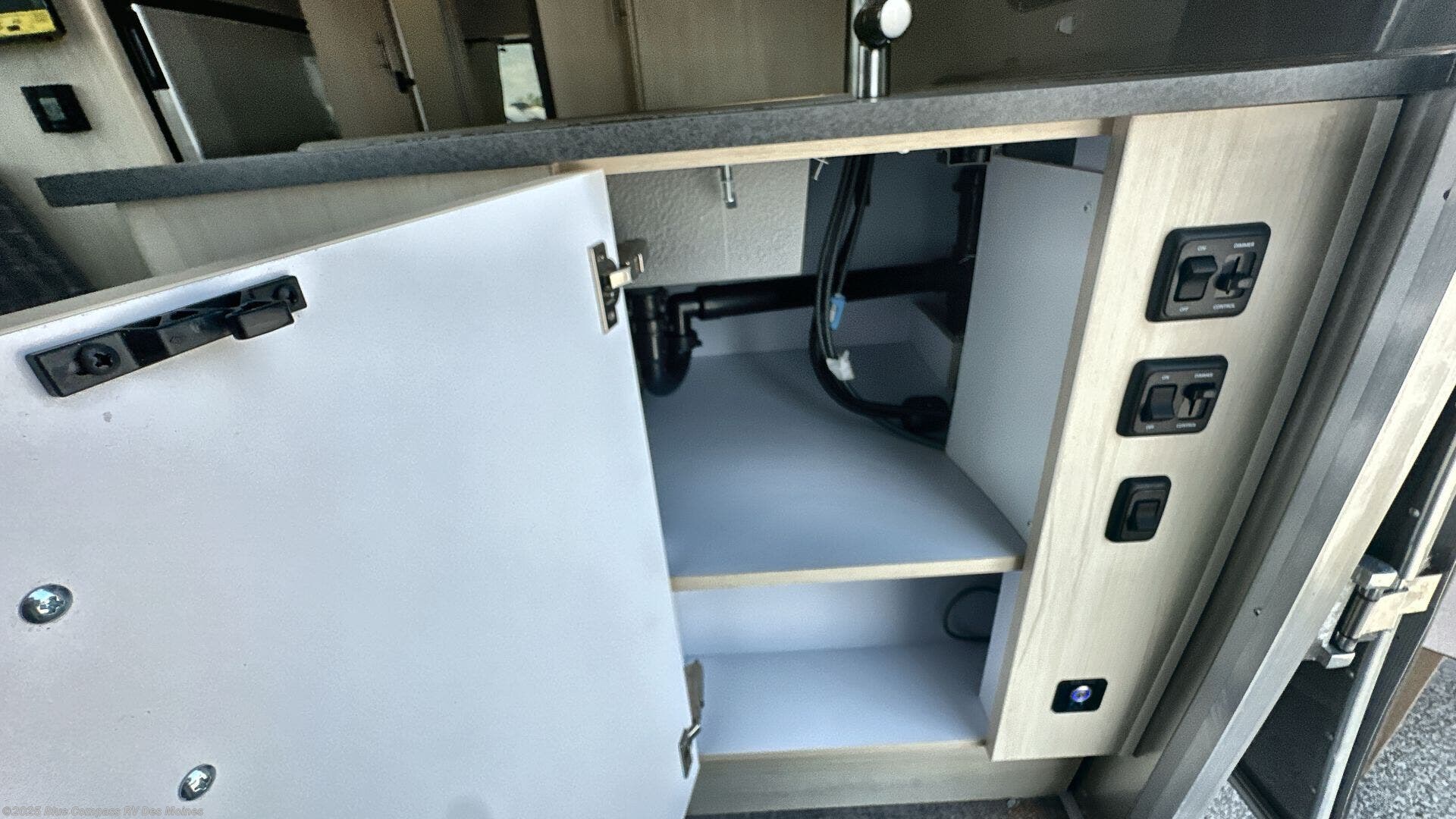 When you enjoy the finer things when traveling, this trailer will provide that for you plus lots of natural lighting and plenty of conveniences. The convertible rear dinette offers a place to dine and socialize for four, and there is a lounging area along the side with a TV on the wall. The table acts as a sturdy base below the cushions when you need some sleeping space. The front bedroom offers more panoramic windows and a comfortable queen bed or optional twin beds with a view each morning and night. You will find storage for your clothing, and a split bathroom with a private toilet and sink on one side and a shower that stands independently across the hall. And the kitchen offers everything you need to make meals including extra counter space and a refrigerator for leftovers. And there is a rear hatch option for this trailer you might want to add to let fresh air in! The Midnight Flamingo optional upgrade is also available on this model for even more striking style and functional upgrades!