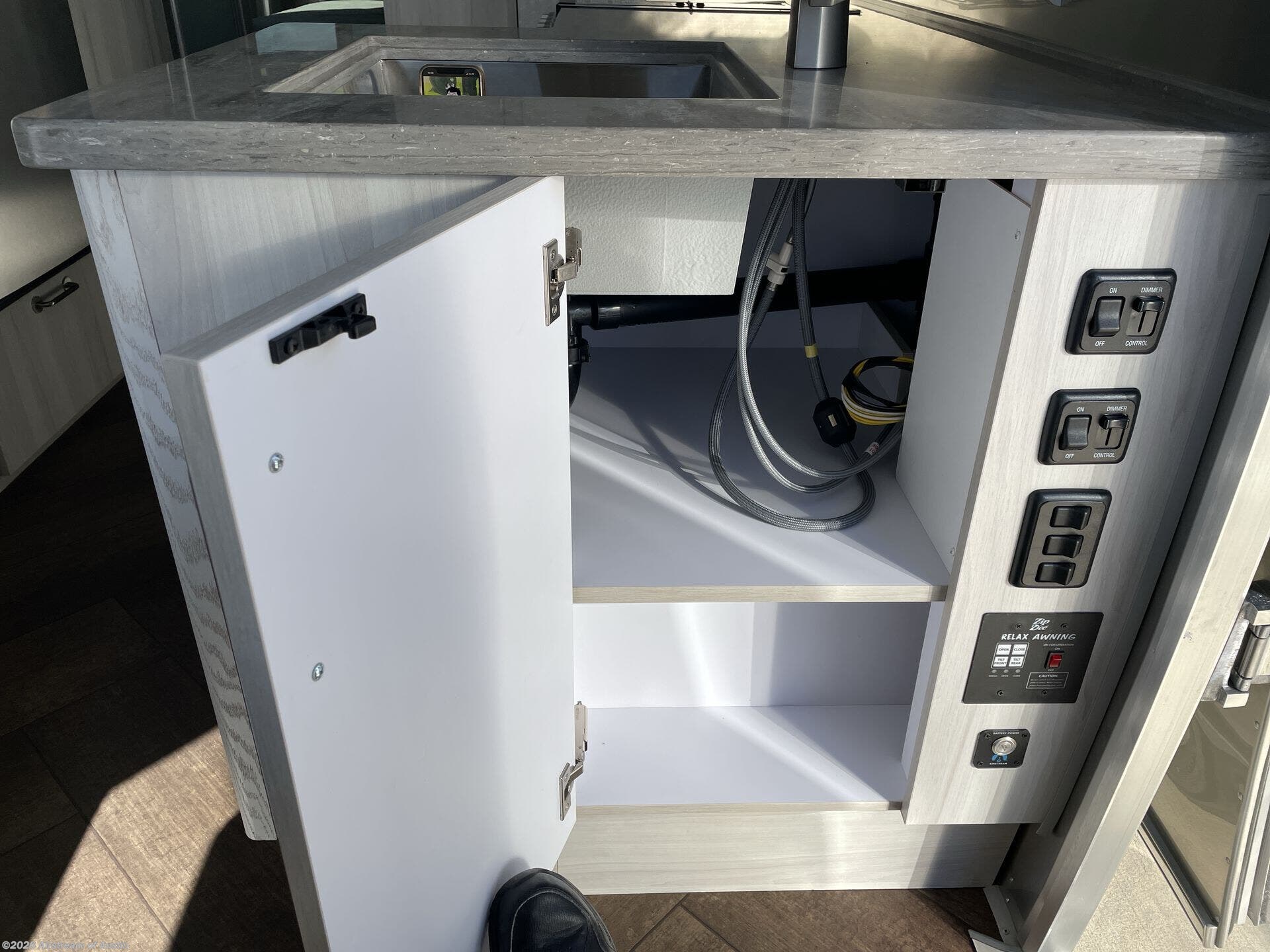 When you enjoy the finer things when traveling, this trailer will provide that for you plus lots of natural lighting and plenty of conveniences. The convertible rear dinette offers a place to dine and socialize for four, and there is a lounging area along the side with a TV on the wall. The table acts as a sturdy base below the cushions when you need some sleeping space. The front bedroom offers more panoramic windows and a comfortable queen bed or optional twin beds with a view each morning and night. You will find storage for your clothing, and a split bathroom with a private toilet and sink on one side and a shower that stands independently across the hall. And the kitchen offers everything you need to make meals including extra counter space and a refrigerator for leftovers. And there is a rear hatch option for this trailer you might want to add to let fresh air in! The Midnight Flamingo optional upgrade is also available on this model for even more striking style and functional upgrades!