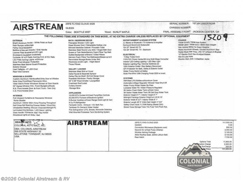 Request More Info on this 2025 Airstream Flying Cloud 25FBQ Queen Hatch Offered for sale by Colonial Airstream & RV