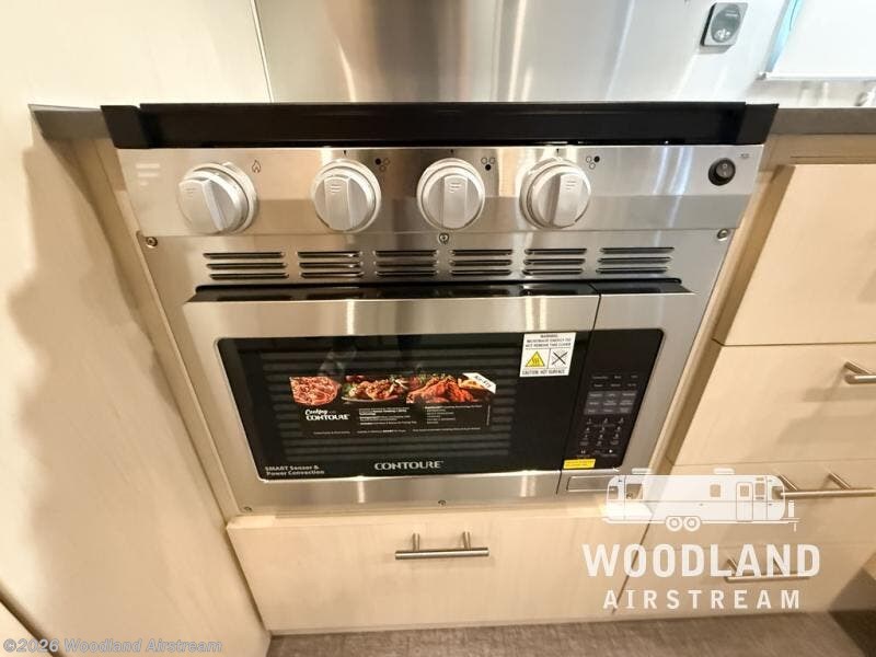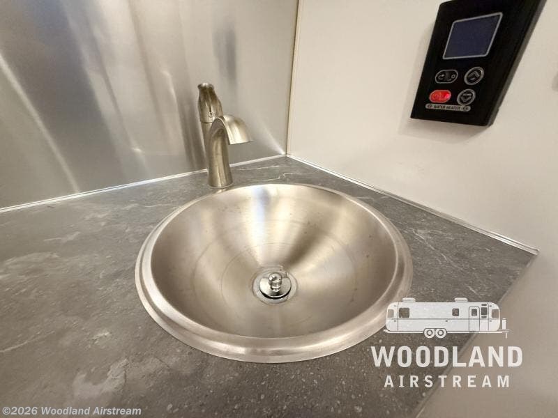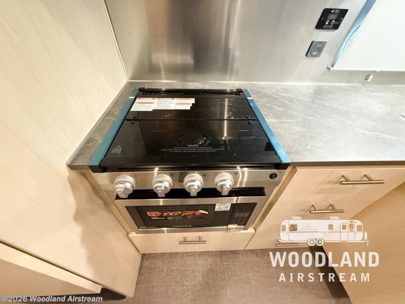 With each Flying Cloud travel trailer by Airstream, there are two axles, and each is built for ease of towing, plus there is a rear-view camera to make reversing and parking easier, and stainless steel front stone guards to protect the lower segments from road debris. The iconic Airstream design is created outside and inside by the semi-monocoque aluminum superstructure, the temperature reducing one-piece white aluminum roof, the panoramic front windows, and the stylish aluminum wheels. The interior will have you feeling right at home with handcrafted cabinetry, plenty of storage and counter space, sleek roller blinds and blackout curtains, plus residential style faucets!