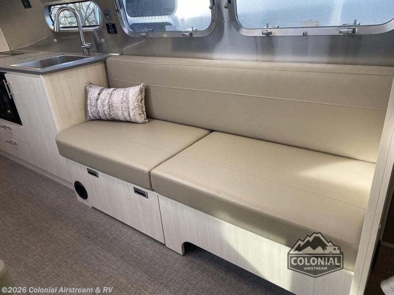 Looking for maximum interior space, a place for eight to sleep at night, plus plenty of storage for your big group? This trailer offers all of that plus so much more! The front private bedroom offers a queen bed with storage on each side to keep your clothing wrinkle free. The main living and kitchen area offers a U-shaped dinette for total comfort when dining, playing games and visiting with everyone. And the sofa offers more relaxation seating, while both furnishings provide extra sleeping space. The rear corner bunks offer a twin above a queen mattress that are designed to fit the curves of the Airstream perfectly. The full bathroom will keep you refreshed, and the kitchen is loaded with everything you need to feed the group. This model is also available with optional twin beds which replace the front queen bed!