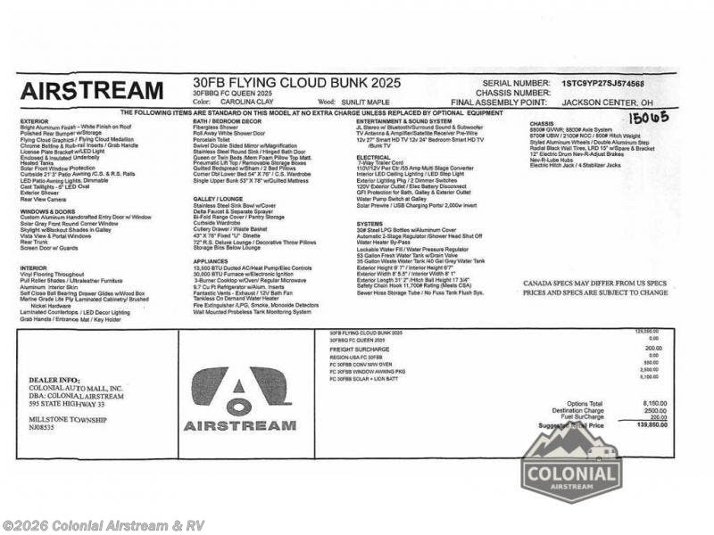 Request More Info on this 2025 Airstream Flying Cloud 30FBB Bunk Queen Offered for sale by Colonial Airstream & RV