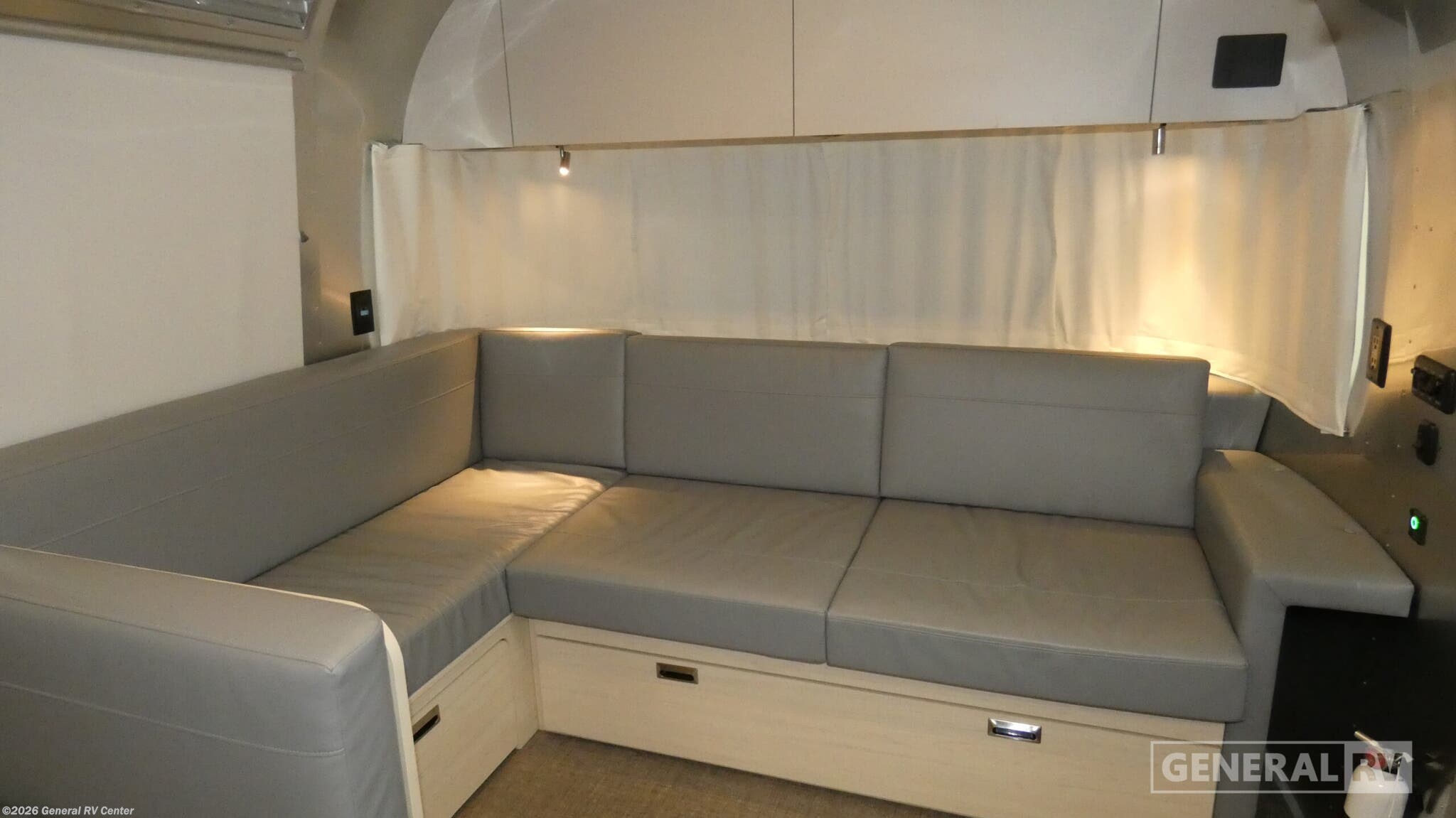 **Airstream Flying Cloud travel trailer 30RB highlights:** - Front L-Shaped Sofa - Rear Bedroom - Booth Dinette - Panoramic Front Windows Whether you are dining with friends or family at the booth dinette or relaxing on the L-shaped sofa while having the perfect view of the TV, you are sure to enjoy every minute in this travel trailer. The cook will love the stove/microwave area, counter space and kitchen sink to make meals for everyone, and the refrigerator is next to the dinette for easy access. The separated bathroom offers a toilet and vanity along one side and a shower with its own door on the other next to a closet for hanging clothes. The rear bedroom offers privacy, more windows for great views of your surroundings, plus a queen bed or optional twin beds! The family-friendly and popular Flying Cloud travel trailers by Airstream are built for ease of towing with a rear-view camera to make reversing and parking easier and stainless steel front stone guards to protect the lower segments from road debris. The iconic Airstream design is created outside and inside by the semi-monocoque aluminum superstructure, the temperature reducing one-piece white aluminum roof, the panoramic front windows, and the stylish aluminum wheels. The interior will have you feeling right at home with handcrafted cabinetry, plenty of storage and counter space, sleek roller blinds and blackout curtains, plus residential style faucets!