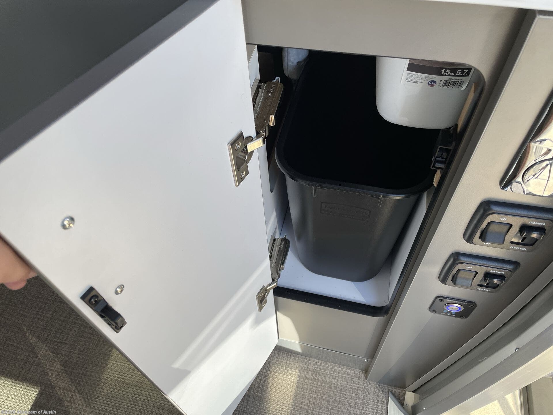 Enjoy a home away from home with this travel trailer! The L-shaped lounge provides a comfortable place to enjoy a meal, play a card game, and even transform into an extra sleeping space for a guest or two smaller guests. The ultra-modern kitchen has a stainless steel three burner cooktop, a Baraldi vent, a 6.8 cu. ft. 12V refrigerator, and a deep stainless steel Moen sink to make clean up easier. The bright white DuPont Corian countertops help light bounce off of the aluminum walls making for a brighter atmosphere and they also have built-in multifunctional storage bins that are flush with the surface behind the sink. Up front there is a queen bed with an AdaptaFlex memory foam mattress for you to enjoy a good night's rest or you can chose the optional twin beds, depending on your needs. The separated bathroom allows one person to freshen up in the shower with a seat while another uses the private toilet and vanity!