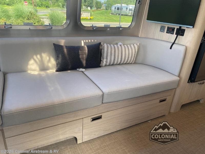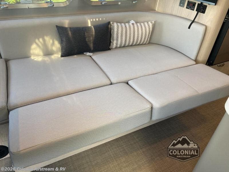 Each one of these Airstream Globetrotter travel trailers are built to last a lifetime with a structural frame and durable fabrics! European inspired and American made with a minimalist design that includes crisp, clean lines and delicate neutral colors for a sophisticated beauty with soft curves, panoramic windows, and handcrafted cabinetry. The HITCH seating upholstery has a fine woven texture, a subtle metallic tip print, and a distinctive two-tone feel, as well as durable and stain-resistant. You won't have to go far when charging your electronics thanks to the strategically placed USB and 110V outlets throughout. The QuietStream ducted A/C system can quickly cool the inside and also has a heat pump to pull ambient heat from the air. Come choose your favorite model today!