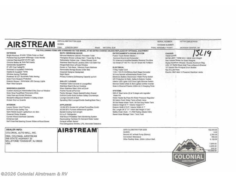 Request More Info on this 2025 Airstream Globetrotter 25FBQ Queen Offered for sale by Colonial Airstream & RV