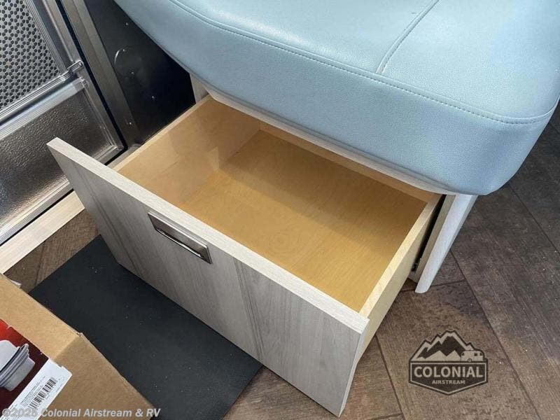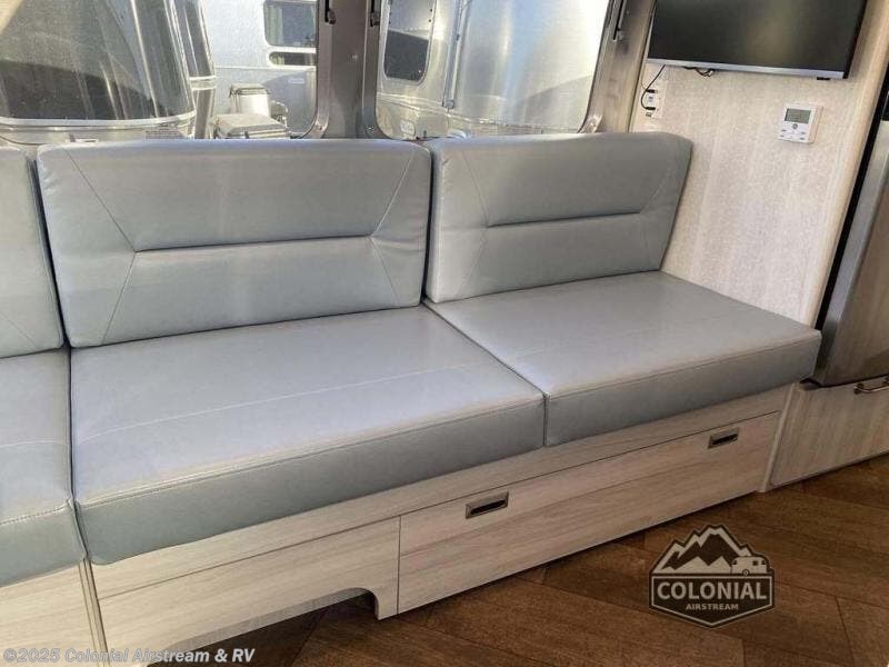 Every time you step foot into the Airstream International travel trailer, you will feel as if you are breathing in a breath of fresh air! The fresh coastal décor was inspired by the waterfront, and the stylish interior delivers a relaxing environment and comfortable luxury. The panoramic windows increase the amount of natural sunlight that streams through to the interior, but they also have blackout shades that you can close whenever you need a darkened room. The beautiful handcrafted marine-grade Lite-Ply laminated cabinetry is an attractive base for the overhead storage lockers that have sliding doors and LED lighting. The dimmable interior LED lighting will create the perfect amount of illumination for you as you spend time indoors. The exterior has excellent features as well with its enclosed aluminum insulated heated underbelly, unique front door key with heavy-duty deadbolt, optional solar package, solar front window protection, and exterior shower with hot and cold water.