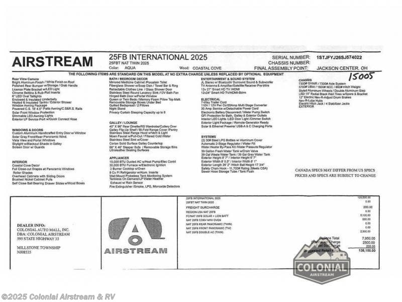 Request More Info on this 2025 Airstream International 25FBT Twin Offered for sale by Colonial Airstream & RV