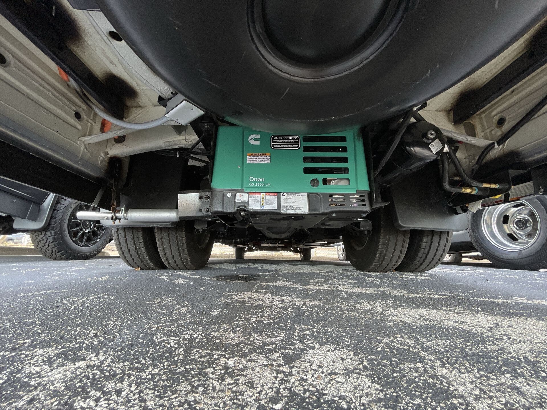 This motorhome is ready to take everyone to each destination in comfort and style! You can even stay overnight without booking a hotel room and stay squeaky clean with a wet bath that has a one-piece shower, a riveted aluminum porthole door, a toilet, a sink with an articulated mirror, a towel rack, and even a retractable clothesline. Keep your bellies full with the two-burner cooktop, the drawer-style microwave and a 3.1 cu. ft. refrigerator under the Corian counter, plus there is a flip-up countertop to make it easier for meal prepping. The rear power sofa is not only great for sitting on during the day, but also for sleeping on at night once it is folded down to turn the entire rear of the unit into a singular sleeping space. In between the two captain's chairs and the two side seats is a removable table to play games and eat meals!