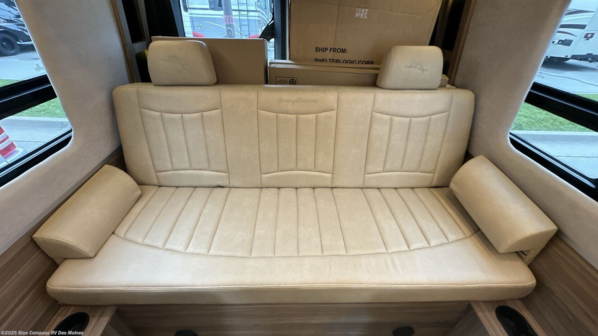 This motorhome is ready to take everyone to each destination in comfort and style! You can even stay overnight without booking a hotel room and stay squeaky clean with a wet bath that has a one-piece shower, a riveted aluminum porthole door, a toilet, a sink with an articulated mirror, a towel rack, and even a retractable clothesline. Keep your bellies full with the two-burner cooktop, the drawer-style microwave and a 3.1 cu. ft. refrigerator under the Corian counter, plus there is a flip-up countertop to make it easier for meal prepping. The rear power sofa is not only great for sitting on during the day, but also for sleeping on at night once it is folded down to turn the entire rear of the unit into a singular sleeping space. In between the two captain's chairs and the two side seats is a removable table to play games and eat meals!