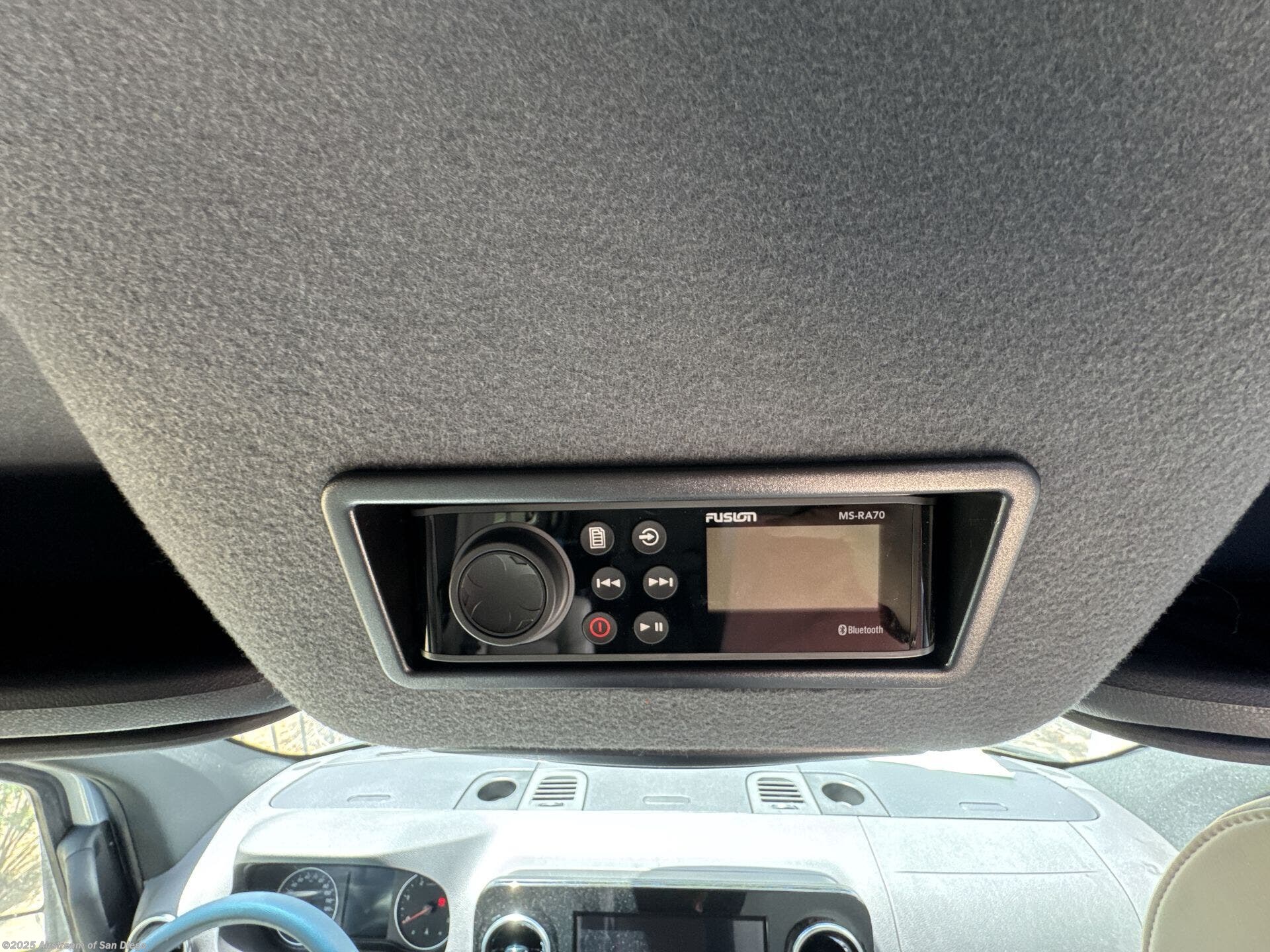 This motorhome is ready to take everyone to each destination in comfort and style! You can even stay overnight without booking a hotel room and stay squeaky clean with a wet bath that has a one-piece shower, a riveted aluminum porthole door, a toilet, a sink with an articulated mirror, a towel rack, and even a retractable clothesline. Keep your bellies full with the two-burner cooktop, the drawer-style microwave and a 3.1 cu. ft. refrigerator under the Corian counter, plus there is a flip-up countertop to make it easier for meal prepping. The rear power sofa is not only great for sitting on during the day, but also for sleeping on at night once it is folded down to turn the entire rear of the unit into a singular sleeping space. In between the two captain's chairs and the two side seats is a removable table to play games and eat meals!
