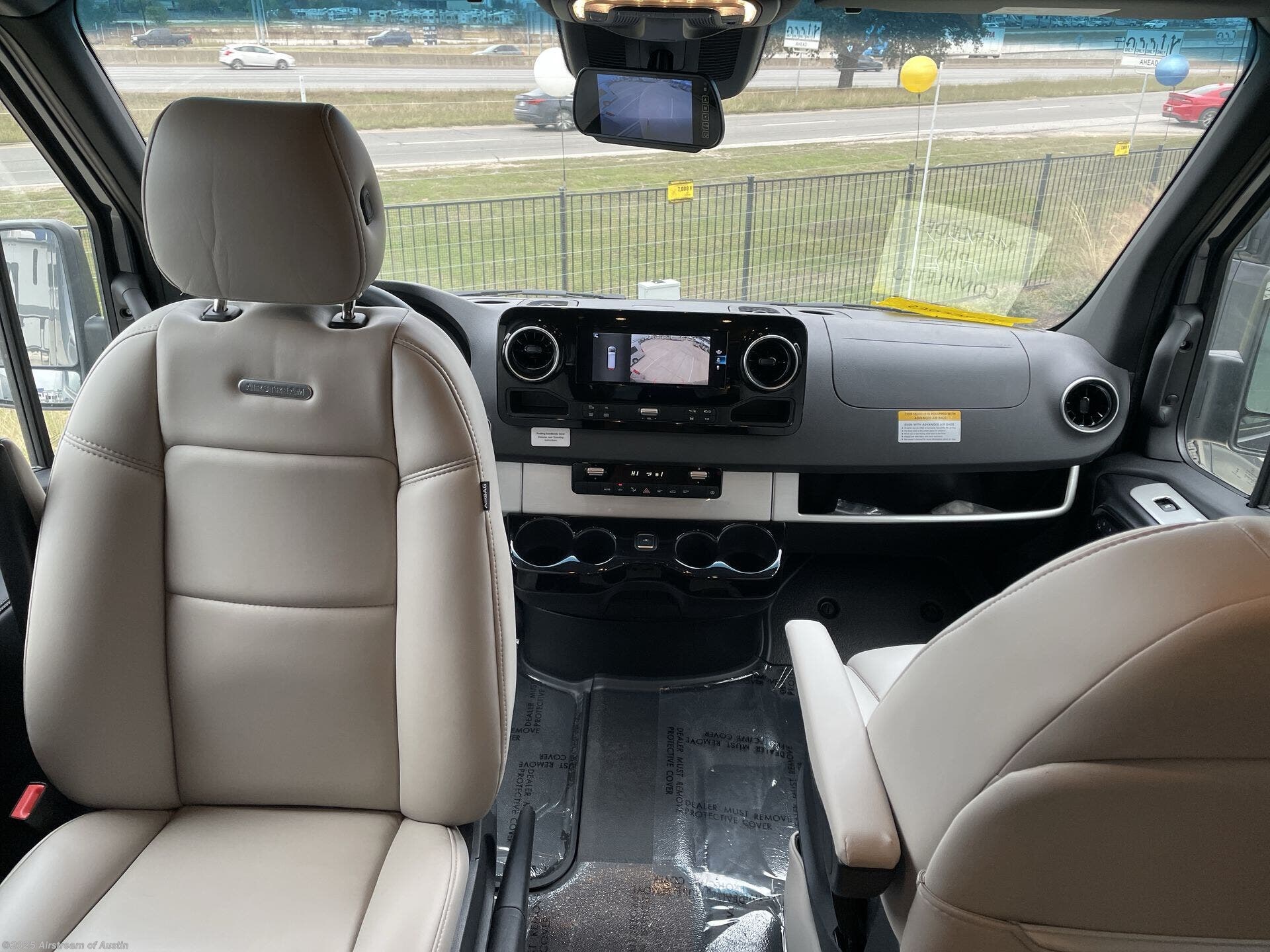 The Airstream Interstate 24GT Class B diesel motorhome offers comfort, performance and safety with the Mercedes-Benz Sprinter 3500 extended chassis, the 3.0L V6 turbo diesel engine, BlueTEC SCR technology, and Adaptive Electronic Stability Program. Also included: active blind spot, brake, driver attention, rear cross traffic assist, plus more safety features giving you peace of mind on the road. More standout features include the power-sliding side door for ease in entering and exiting with a built-in screen door to allow airflow when parked, storage cubbies with USB charging ports, and a super comfortable Ultraleather sofa that offers both seating and sleeping space. You will also appreciate the touch screen/touch pad electronic controls with an Energy Management system, and a 400 watt solar system for off-grid camping