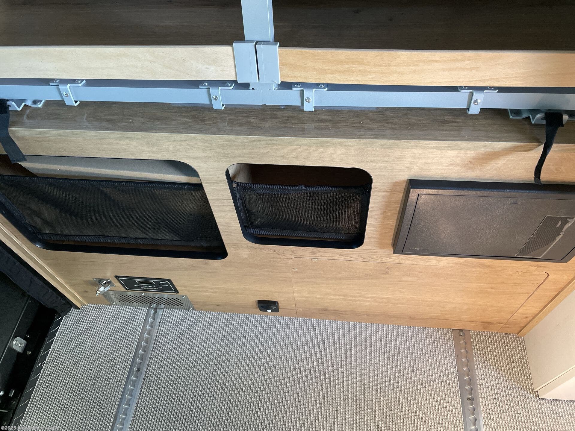 The Airstream Rangeline offers complete comfort and flexibility with great living spaces, flexible storage throughout, and all the amenities you need to enjoy travel. Its sleek design with painted grille, two interior color choices with Warm River Oak cabinets and drawers, and gray laminate countertops allows you to travel in style. The Ram ProMaster 3500 chassis offers front-wheel drive and 276 horsepower, with an efficient gas-powered heat and hot water system plus SumoSprings and SuperSprings for an overall better driving experience. Rear storage includes MOLLE panels on the rear doors to hang all your gear, and space under the bed for even more cargo. The optional pop-top roof has three screen windows and another bed, expanding sleeping capacity to four people.