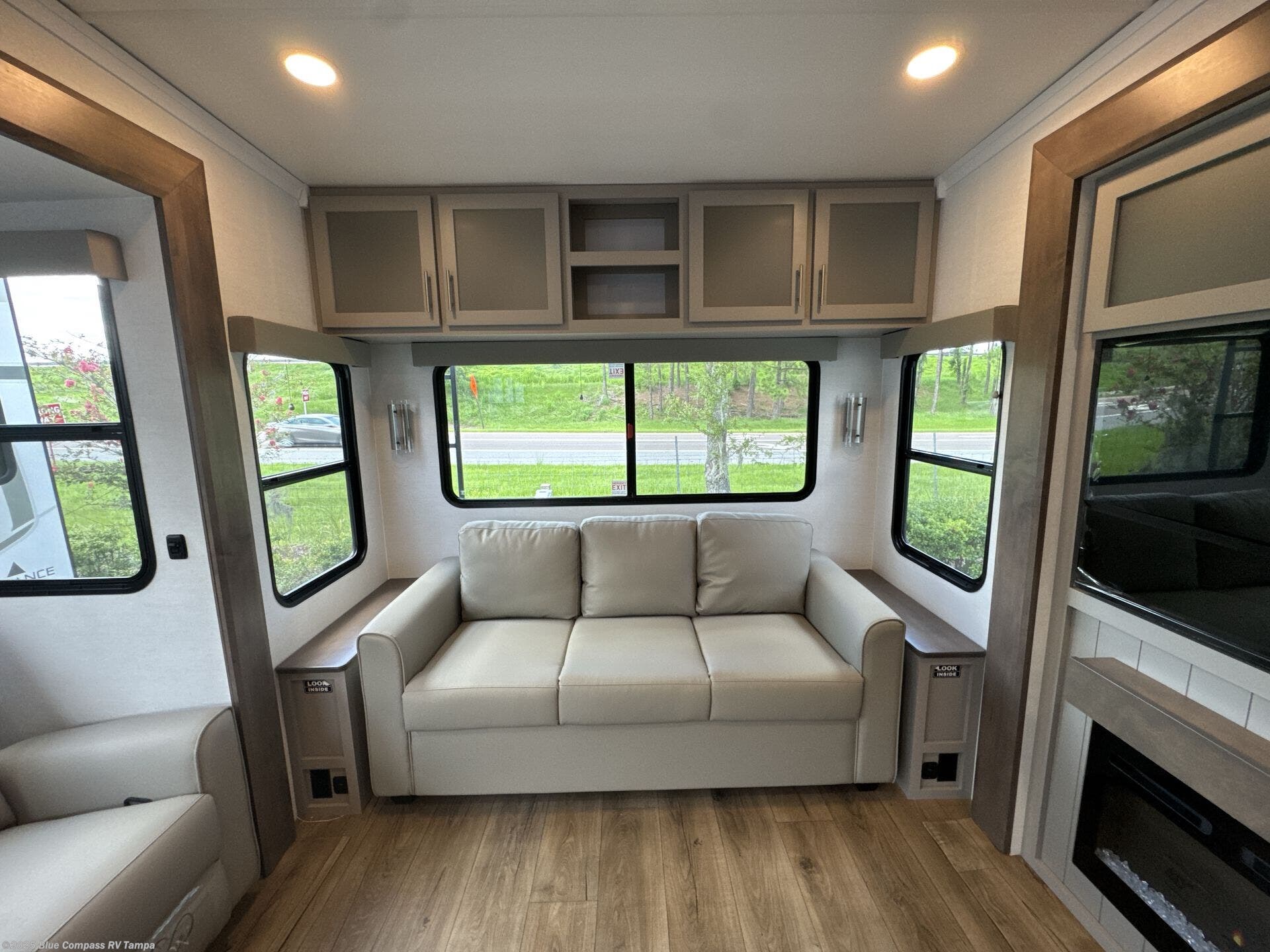 With any Avenue fifth wheel or travel trailer by Alliance RV, you will enjoy more interior space provided by the 8' 5" wide-body construction, and a long list of luxury features. Each is built with Azdel composite sidewalls both inside and out, along with a PVC roof for added strength. There are innovative storage solutions that include hidden storage behind the TV, within end tables and ottomans, and more. Since these units feature no carpet throughout, cleaning will be easier than ever, and there are flush floor slides throughout for seamless living spaces. The Avenue also comes with the OTG Solar Package with a 400 watt solar panel, inverter prep, multiple outlets, and more to keep you charged up!