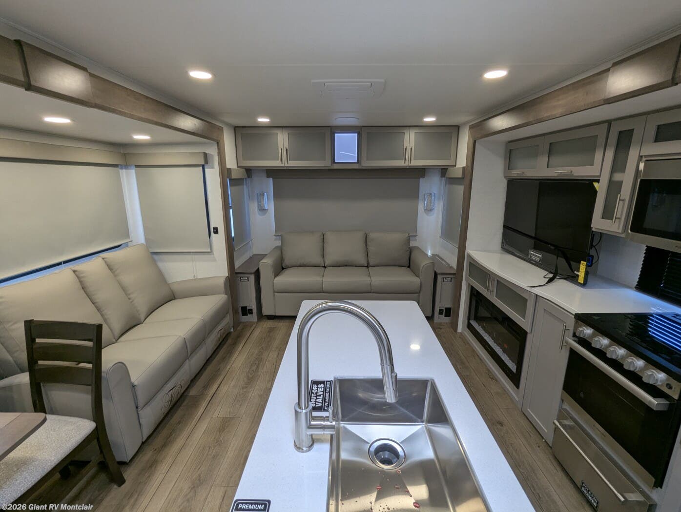 Experience premium RV camping with the 2025 Alliance RV Avenue 332RL travel trailer at Giant RV in California! Ideal for couples or small families, this RV features a rear living area with theater seating, a tri-fold sofa, and 50” LED TV, plus a front queen bedroom (king optional). Three slide-outs expand the space, with a kitchen boasting a 12 cu. ft. fridge, Insignia range, and island. A full bath with shower ensures comfort. Enjoy a 16’ power awning, exterior storage, and a 71-gal fresh water tank. Equipped with dual 13,500 BTU A/Cs and a 35,000 BTU furnace.