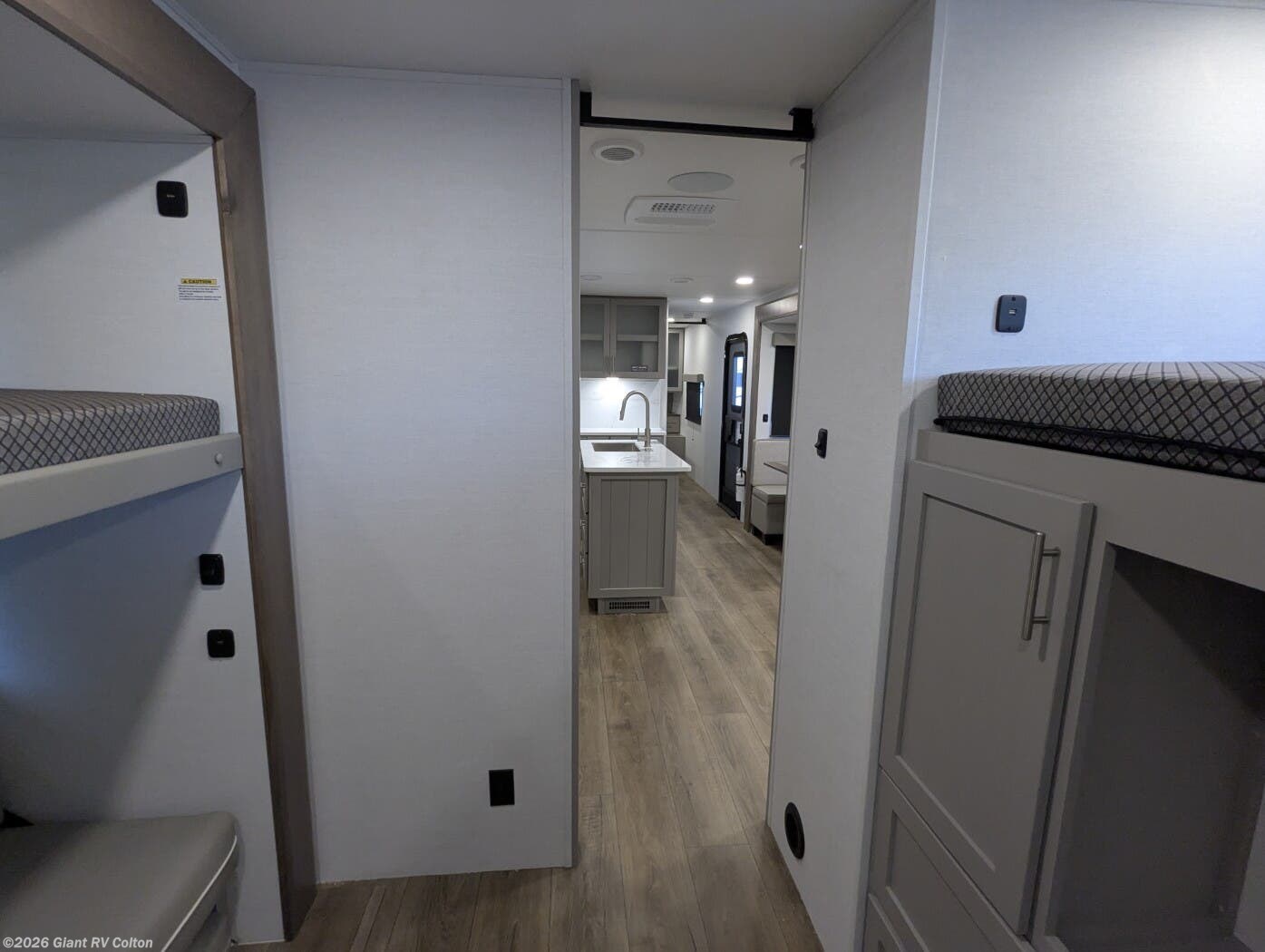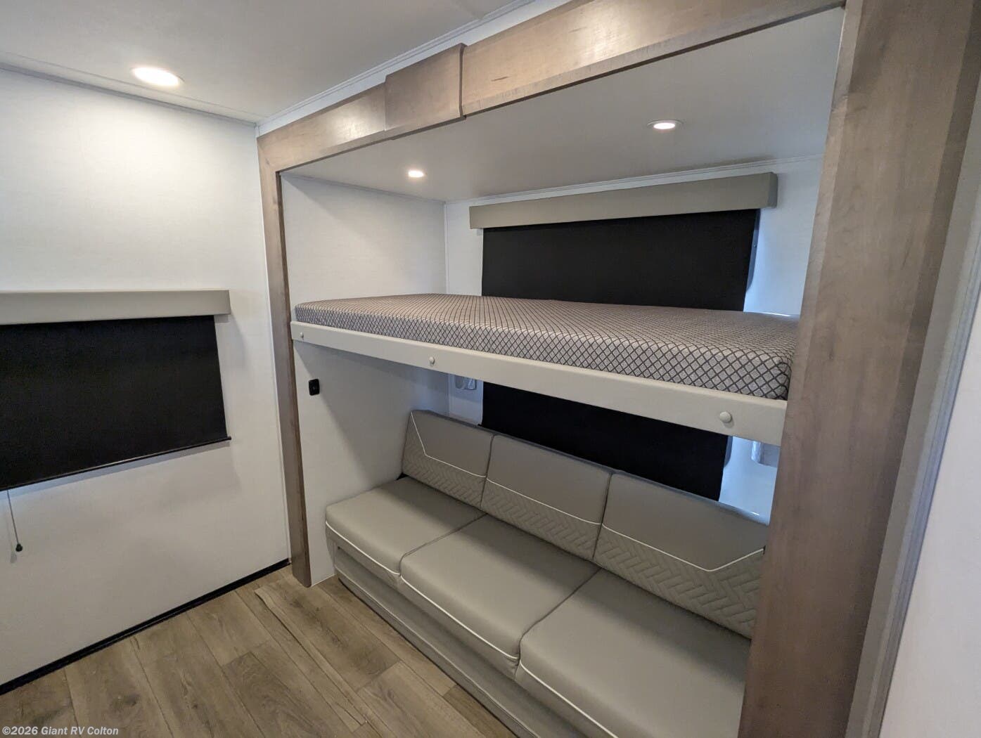 Unleash family RV adventures with the 2025 Alliance RV Avenue 333BH travel trailer at Giant RV in California! Perfect for large families, this RV features a rear bunkhouse with two bunks, a front queen bedroom, and a full bath with a 30”x36” shower. Three slide-outs expand the living area with a tri-fold sofa and dinette, sleeping up to 6. The kitchen boasts a 16 cu. ft. 12V fridge, 3-burner cooktop, and island. Enjoy a 16’ power awning and 71-gal fresh water tank. Equipped with dual 13,500 BTU A/Cs and a 35,000 BTU furnace.