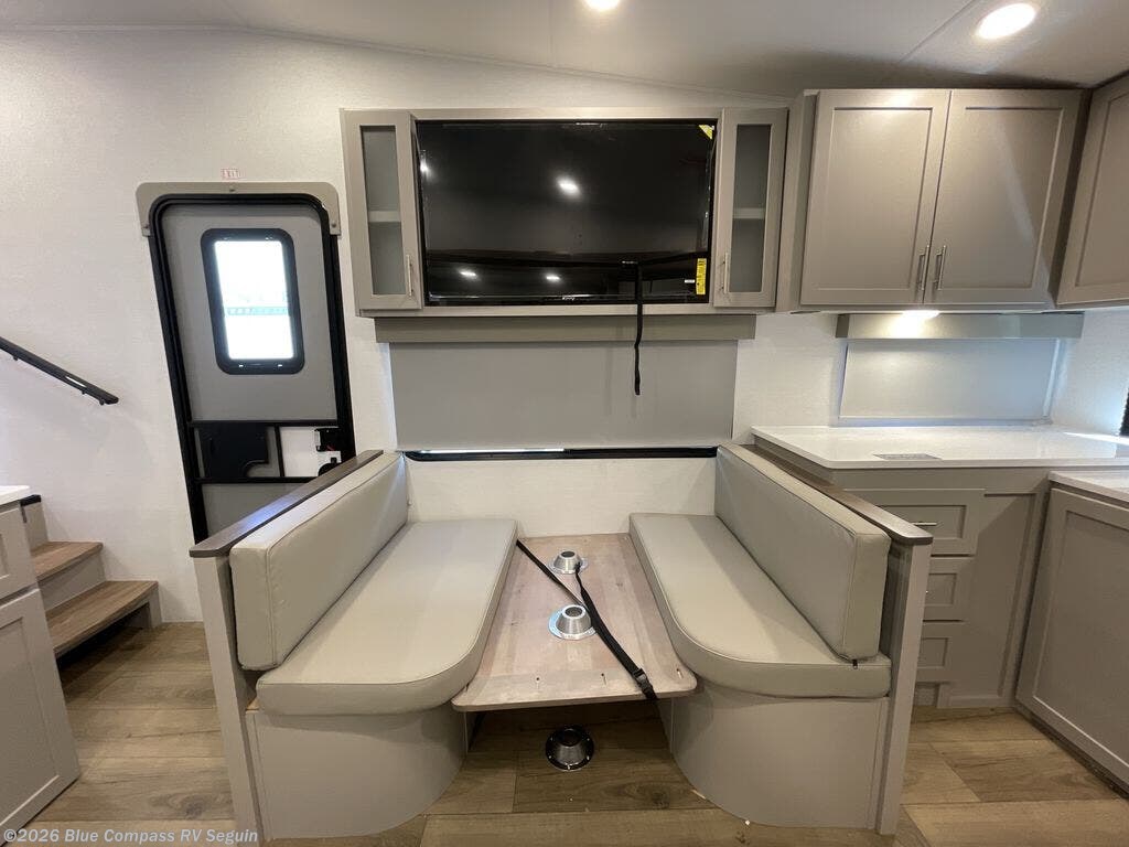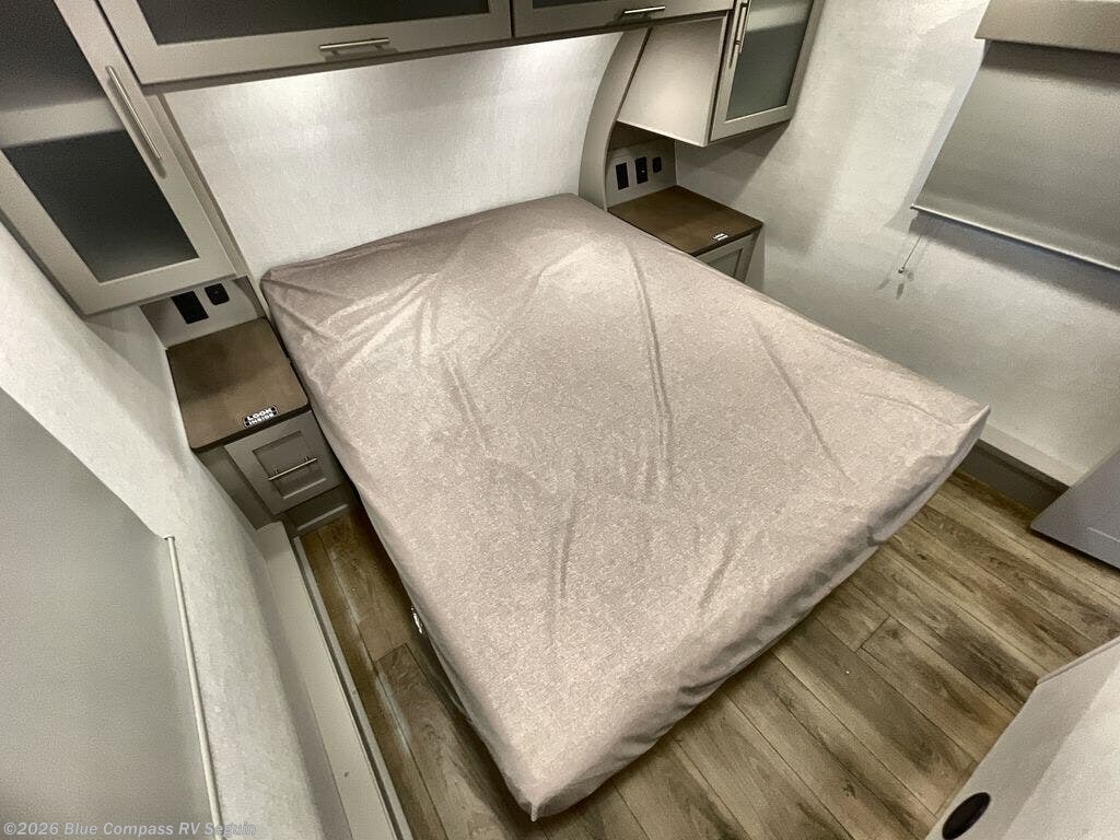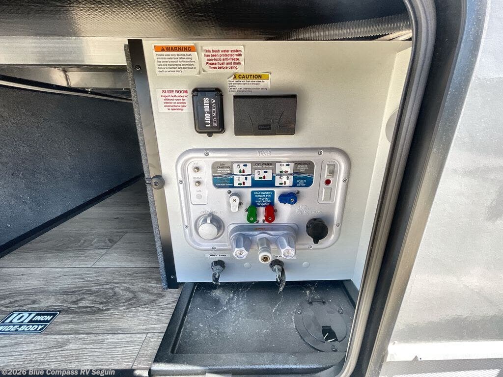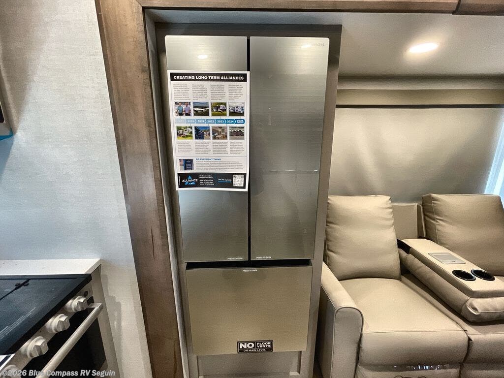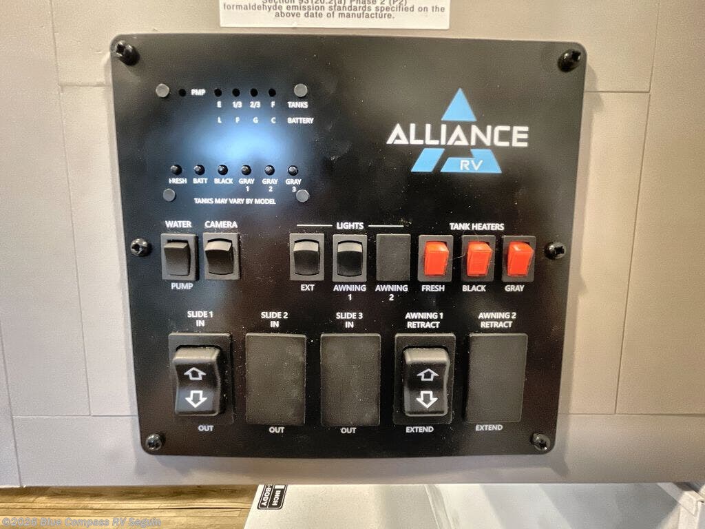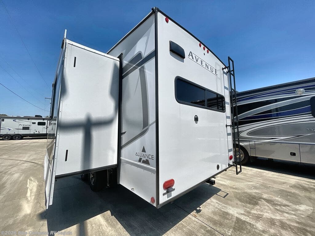 A benchmark chassis creates a space saver upper deck with each one of these Avenue All-Access fifth wheels by Alliance RV! The 101 in. wide-body construction gives you more room to walk around and the flush slide out floors throughout prevent any tripping. There are Azdel composite sidewalls inside and out, and a seamless fully walkable PVC roof for extreme durability and zero maintenance. You are sure to love the "no carpet zone" making each Avenue easy to clean and allergen free, not to mention pet friendly. You can maximize your space throughout with innovative storage solutions like the hidden storage behind the TV, inside the end tables, ottoman, and dinette chairs. These units also include the OTG Solar Package with a 200 watt solar panel, 15 amp MPPT charger, multiple outlets, and more to keep you powered up!