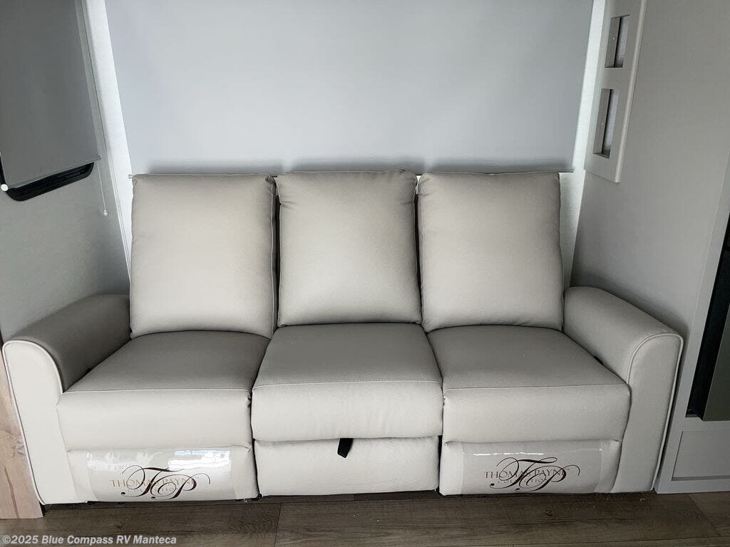 A benchmark chassis creates a space saver upper deck with each one of these Avenue All-Access fifth wheels by Alliance RV! The 101 in. wide-body construction gives you more room to walk around and the flush slide out floors throughout prevent any tripping. There are Azdel composite sidewalls inside and out, and a seamless fully walkable PVC roof for extreme durability and zero maintenance. You are sure to love the "no carpet zone" making each Avenue easy to clean and allergen free, not to mention pet friendly. You can maximize your space throughout with innovative storage solutions like the hidden storage behind the TV, inside the end tables, ottoman, and dinette chairs. These units also include the OTG Solar Package with a 200 watt solar panel, 15 amp MPPT charger, multiple outlets, and more to keep you powered up!